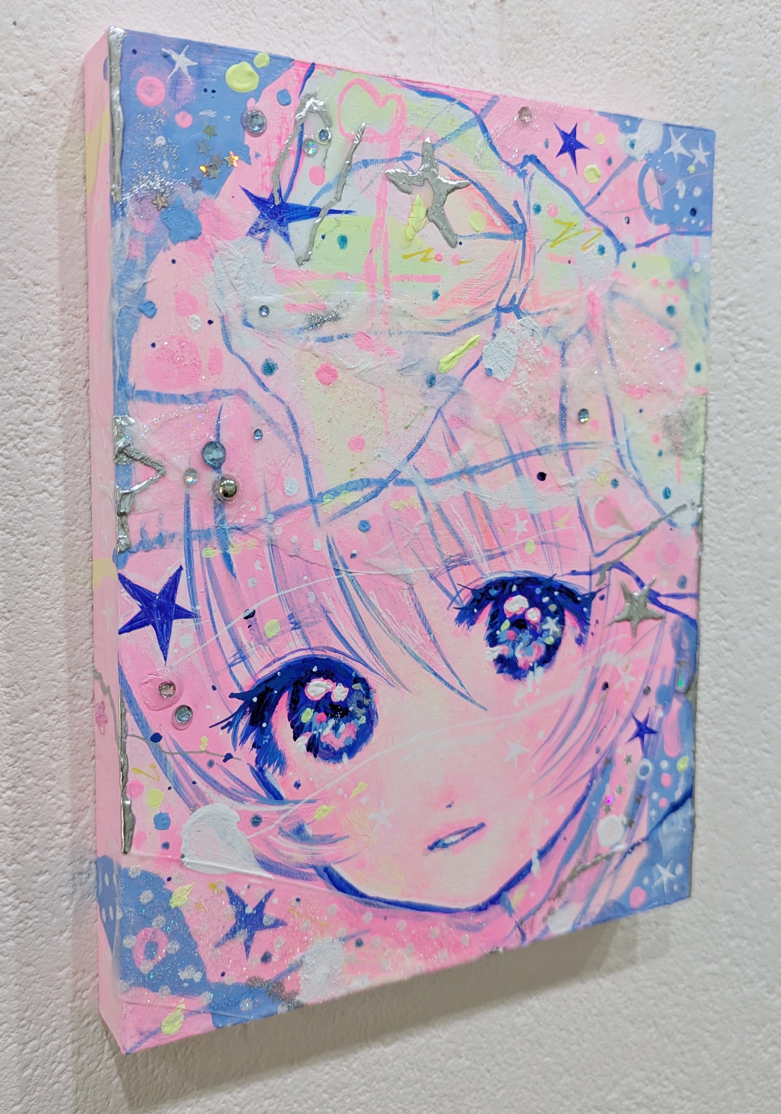 2025年。木製パネル、アクリル、ラメ。サイズ 180×140mm。オリジナル。サインあり。発送は5月7日以降となります。箱などの付属品はありません。
