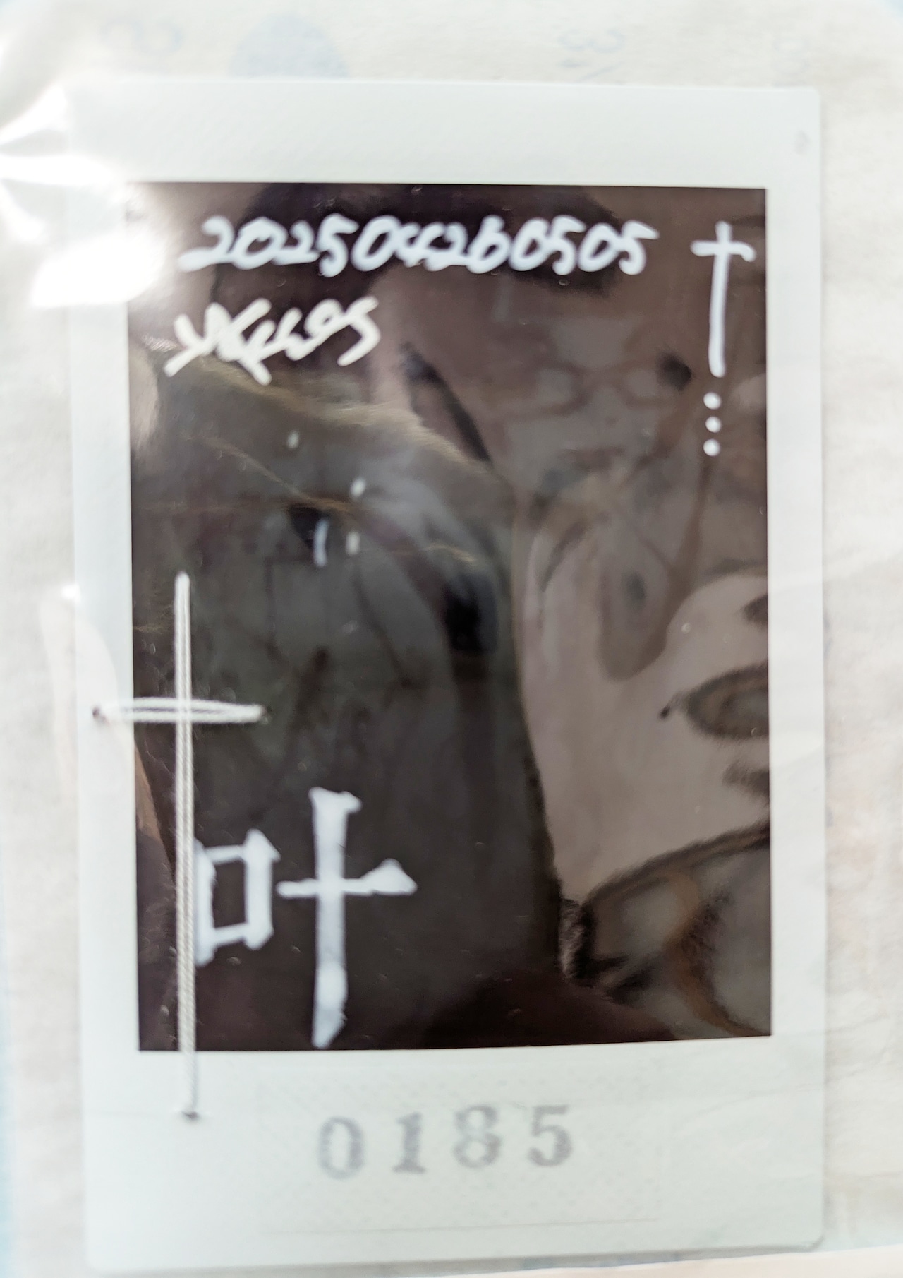チェキ。パウチ袋に入っています。チェキサイズおよそ85×53mm。