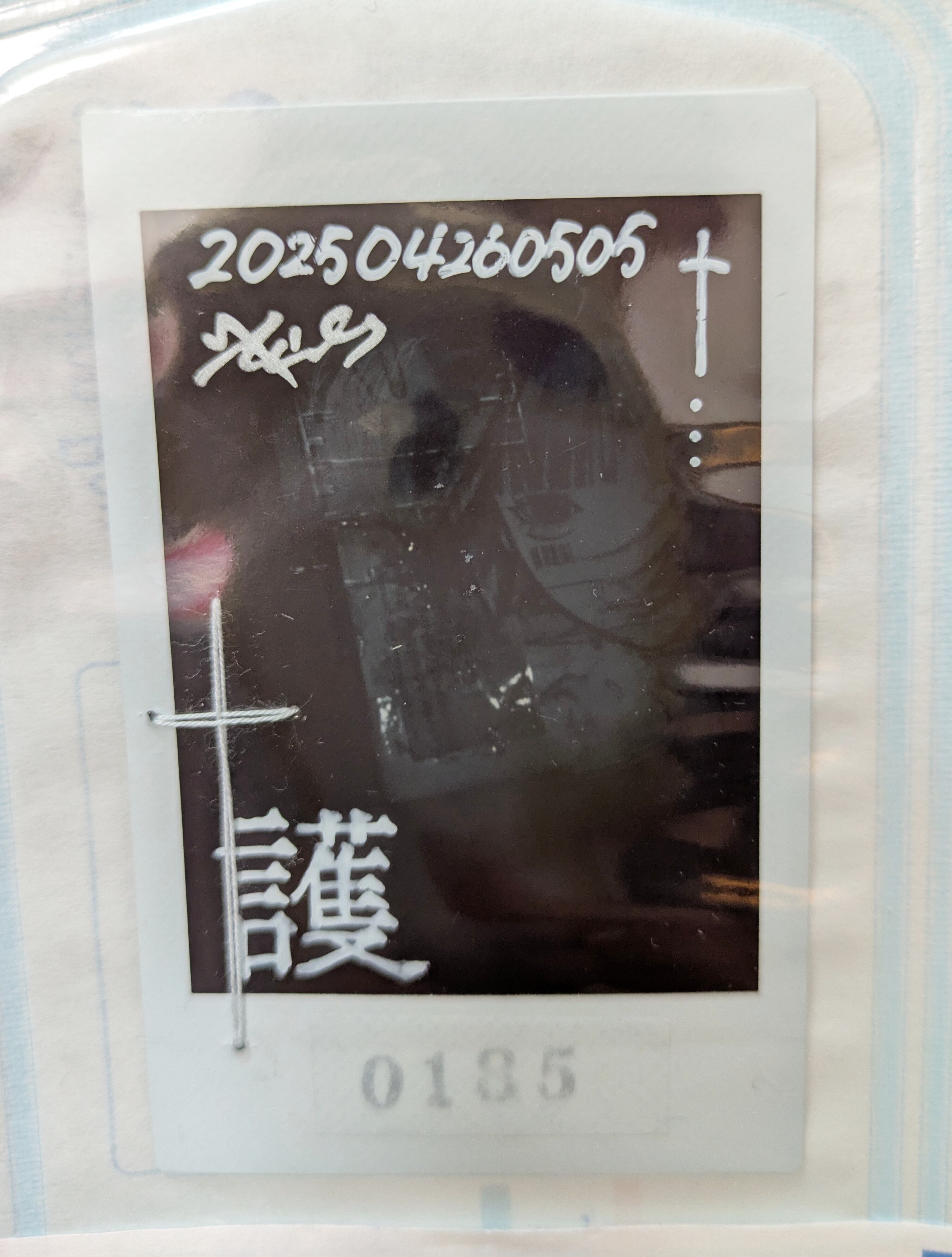 チェキ。パウチ袋に入っています。チェキサイズおよそ85×53mm。