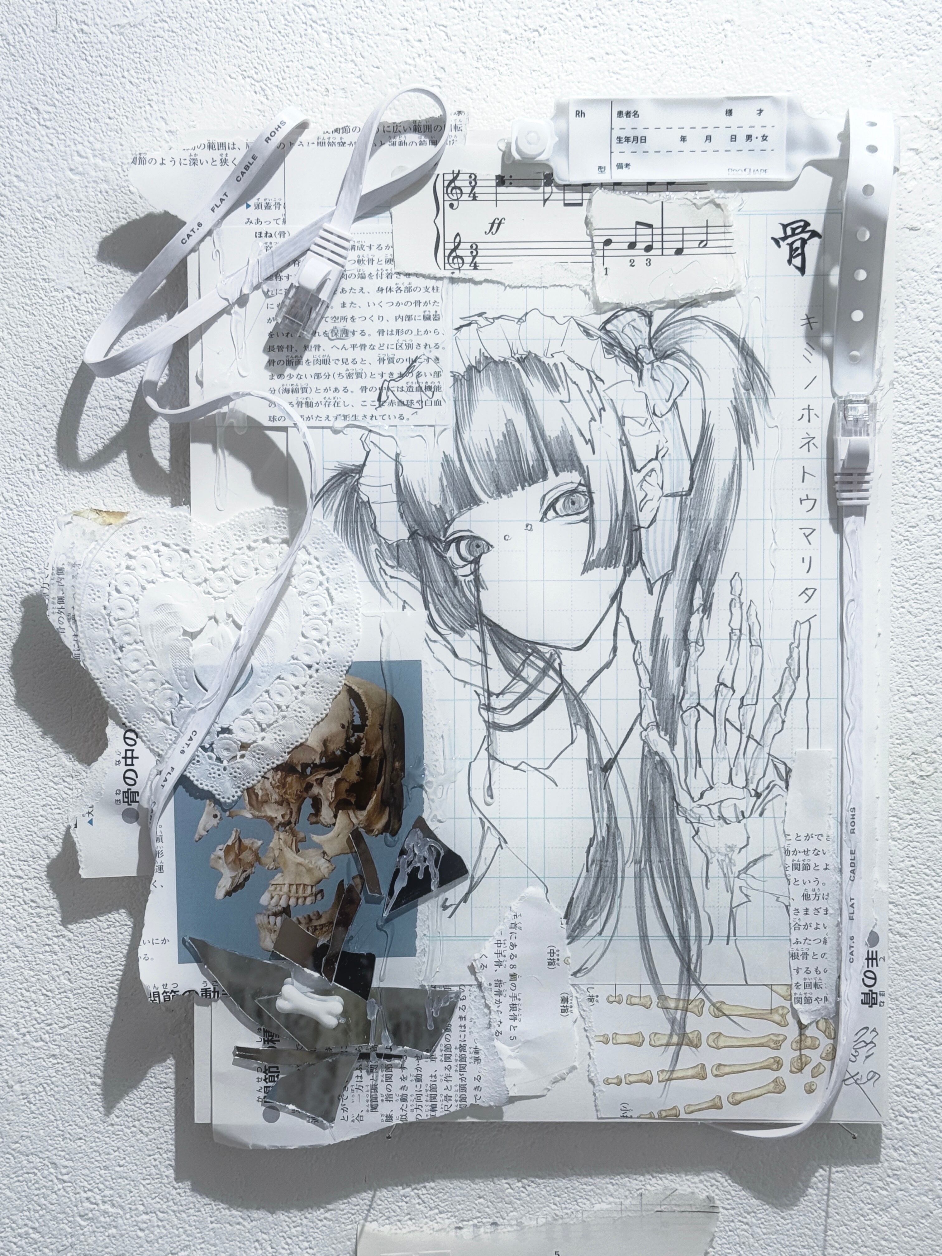 2025年。ミクストメディア(ミラー、コード、紙他)。ボード部分のサイズはおよそ297×210mm。オリジナル。サインあり。箱などの付属品はありません。