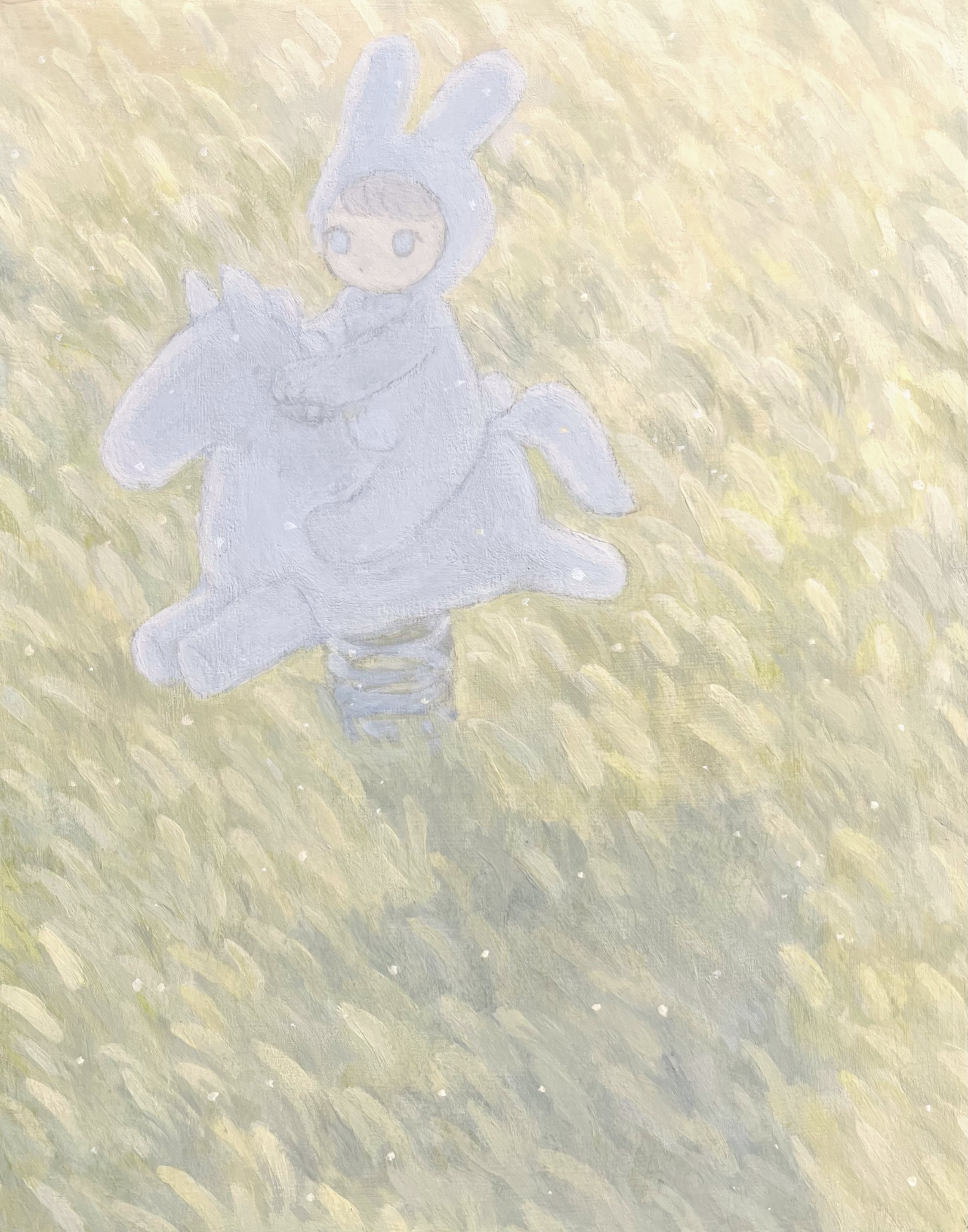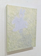 主にアクリルガッシュを使い、子どもや花、植物などをモチーフに淡く優しい世界を描いています