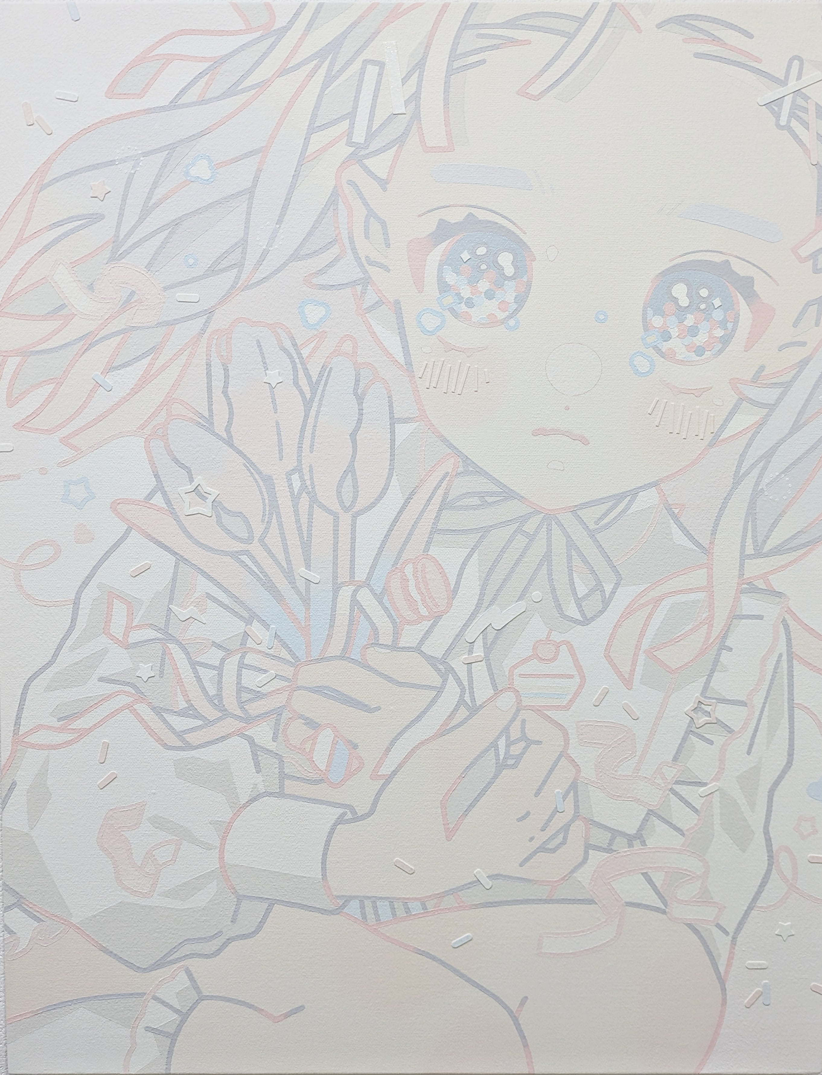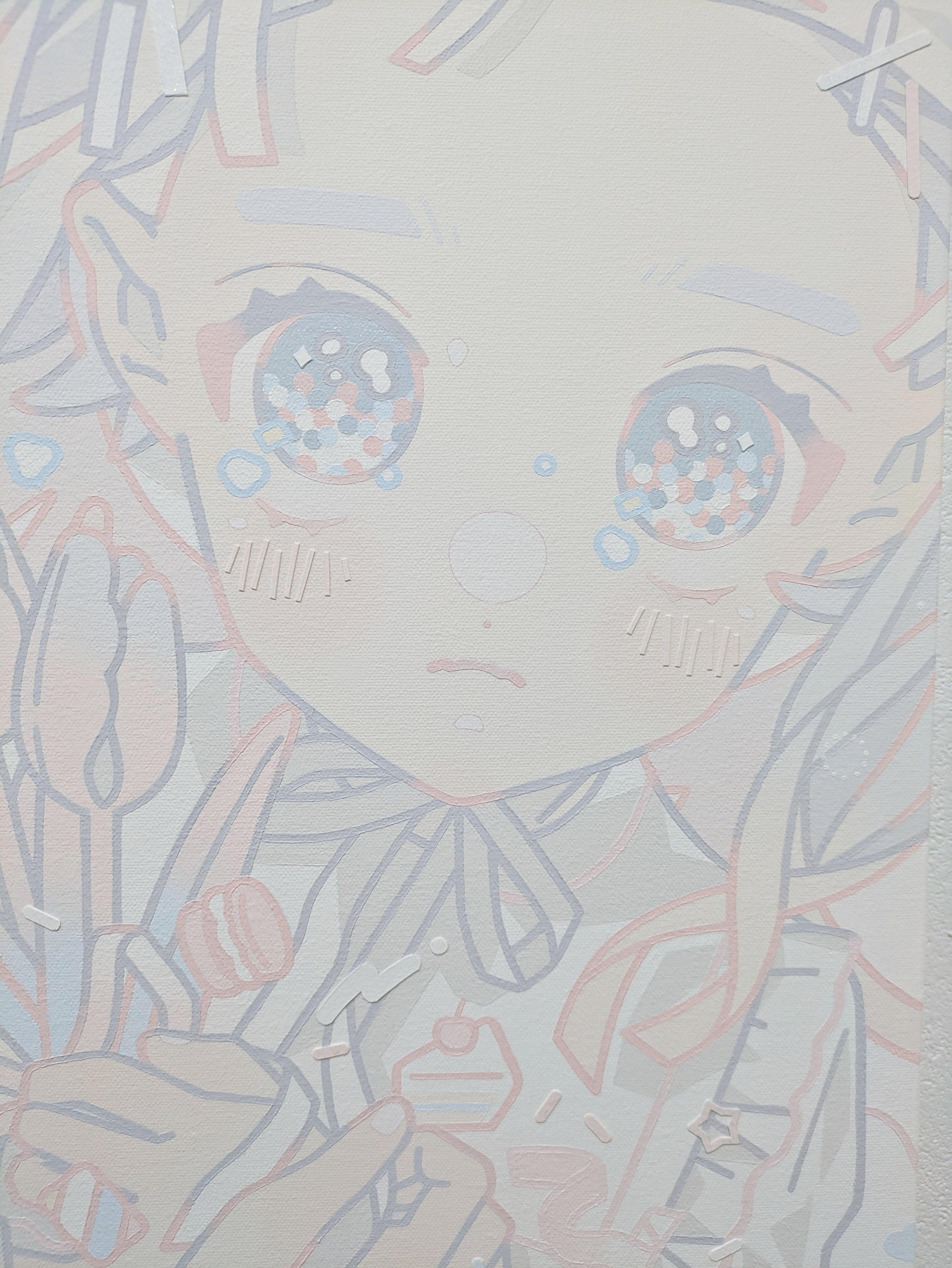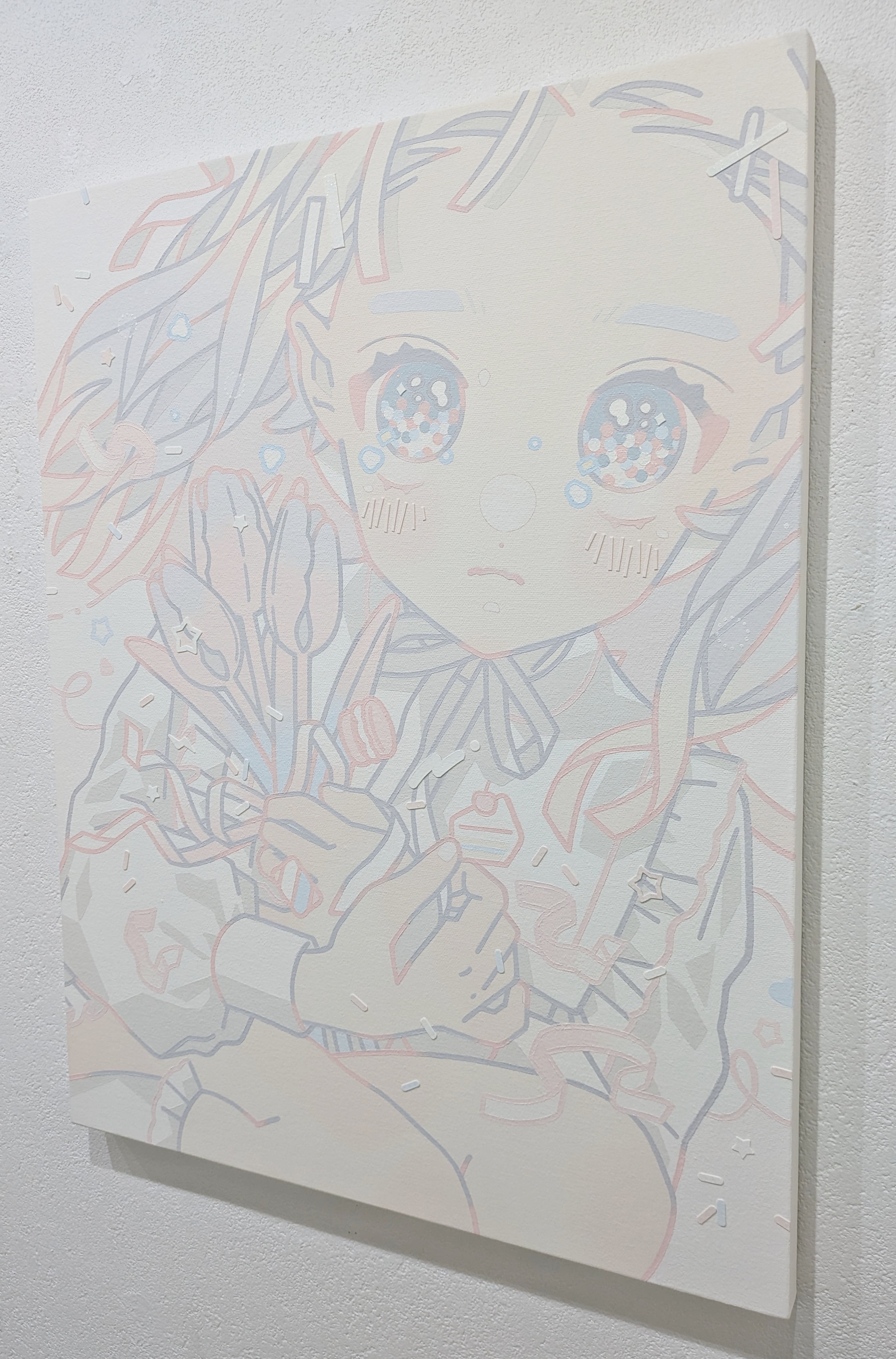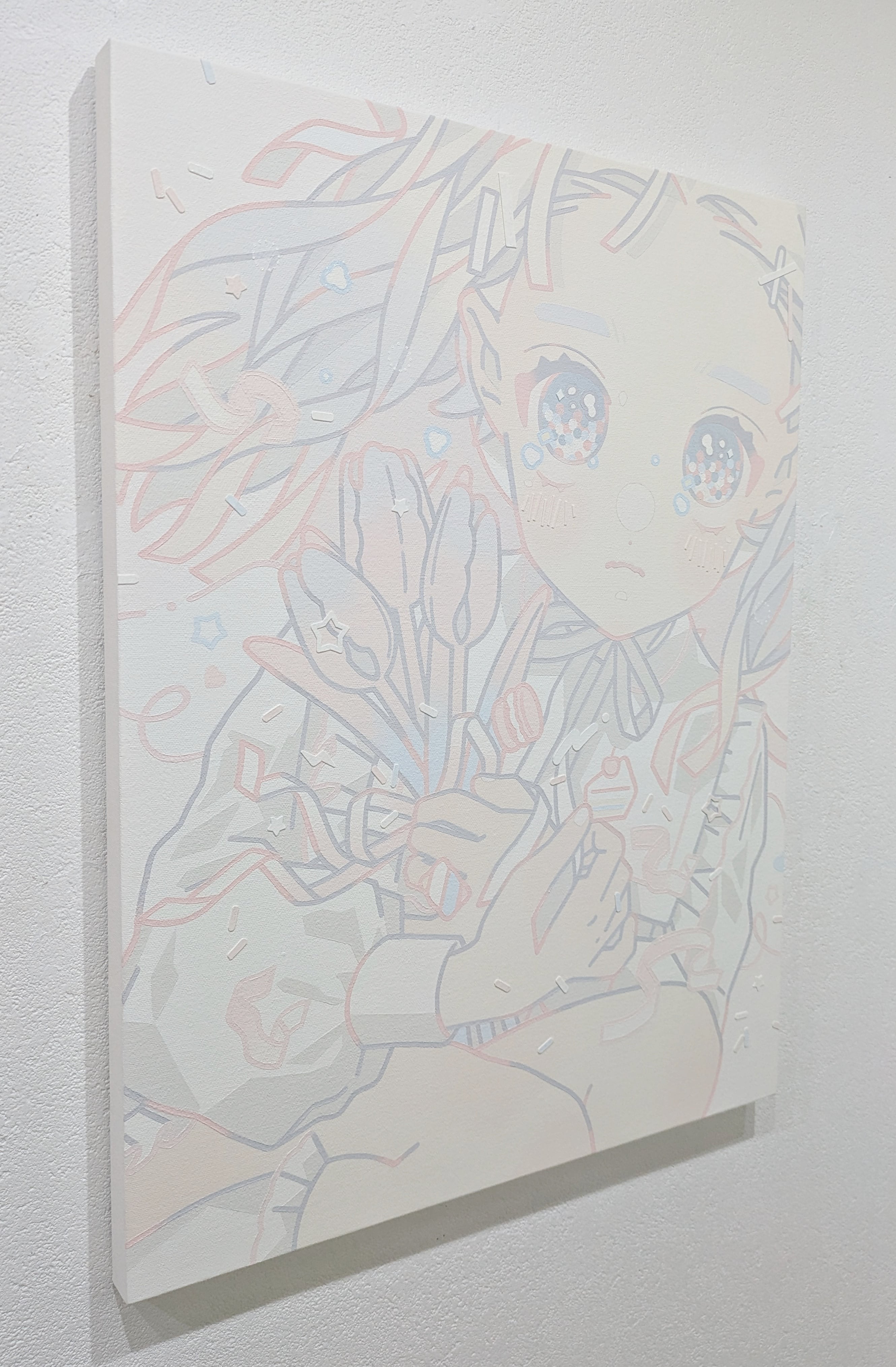 2024年。アクリル、アクリルガッシュ、ウルトラマットメディウム、色鉛筆、ホワイトワトソンキャンバス。サイズ530×410mm。なお、発送は10月6日以降となります。