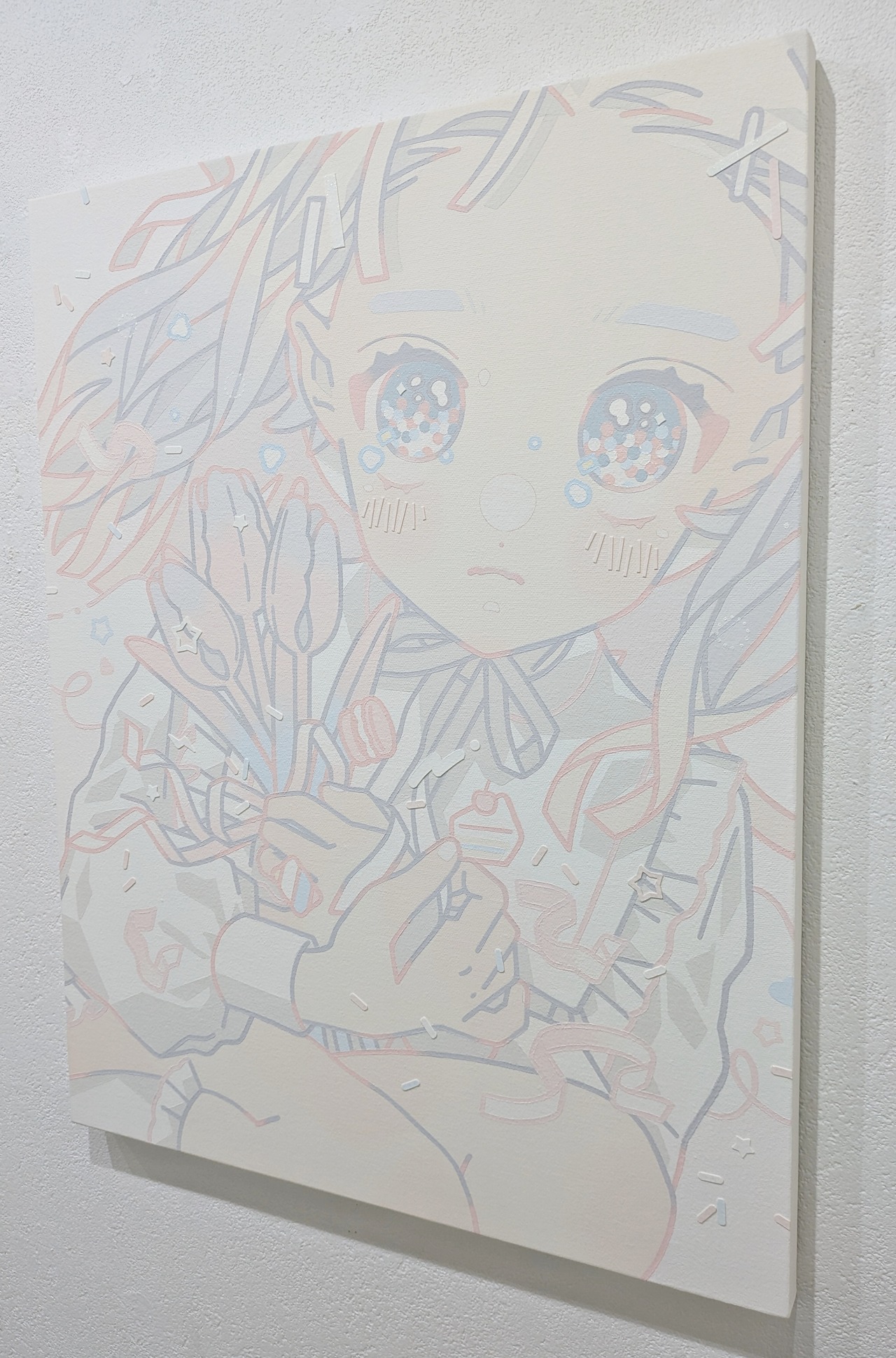 2024年。アクリル、アクリルガッシュ、ウルトラマットメディウム、色鉛筆、ホワイトワトソンキャンバス。サイズ530×410mm。