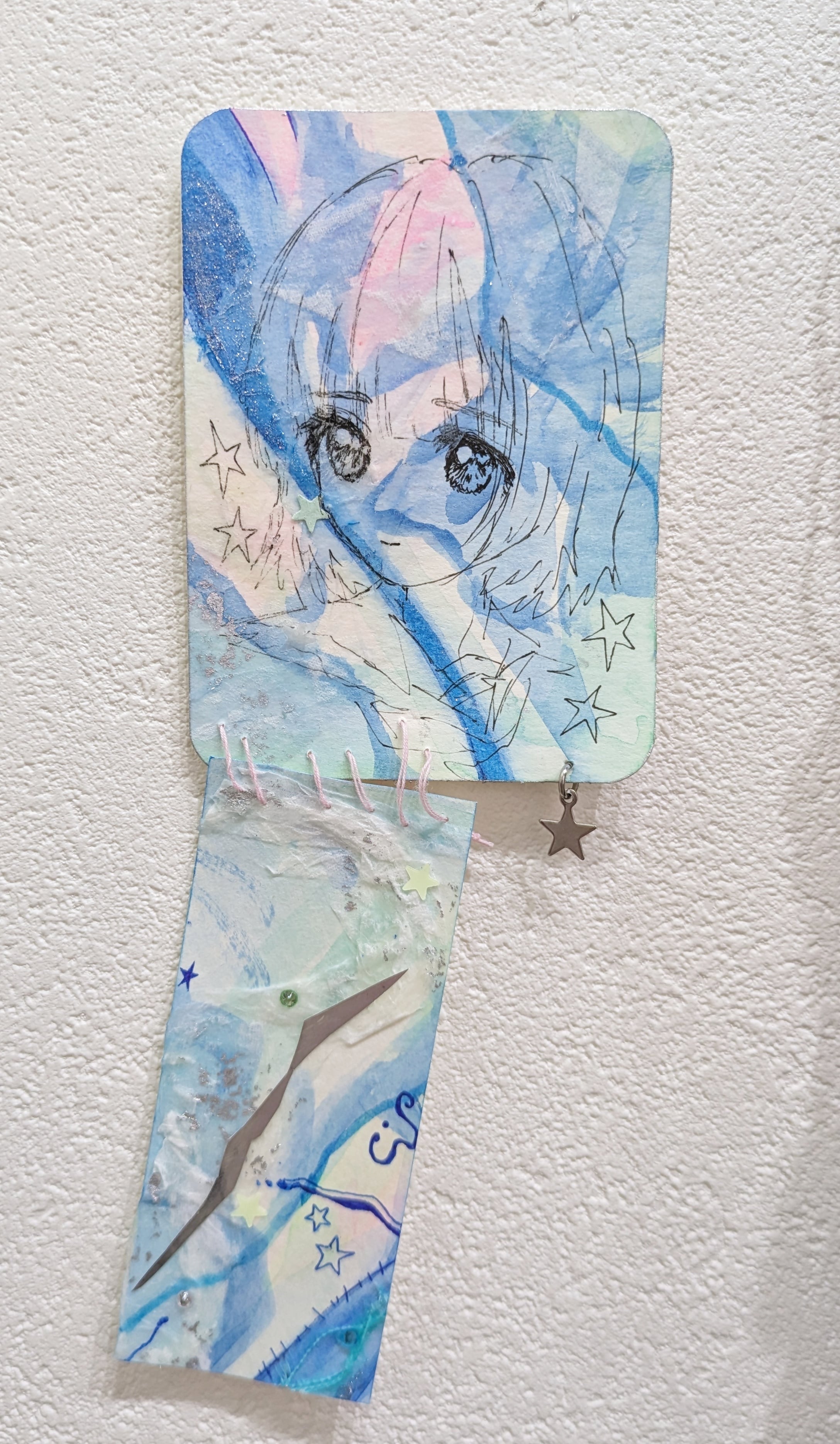 2025年。水彩紙、水彩絵具、アクリル絵具、ボールペン。サイズおよそ205×75mm。オリジナル。サインあり。発送は10月26日以降となります。付属の箱などはありません。