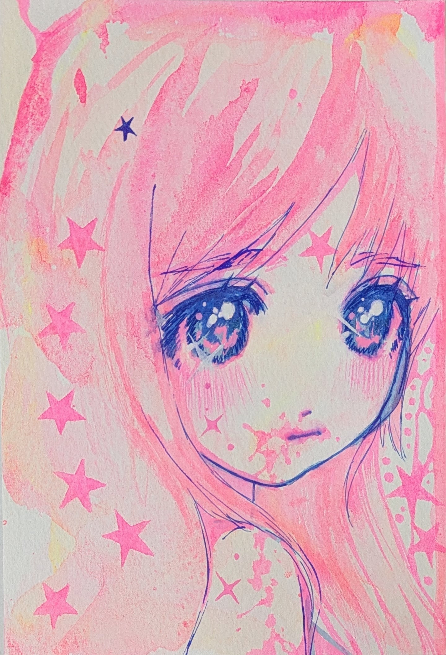 コロナ禍でのマスク生活やSNS等、見えない相手の顔を自身の理想の姿で想像していることをきっかけに「顔」を描くようになる。想像により生まれる輝きと混沌を作品に内包している。