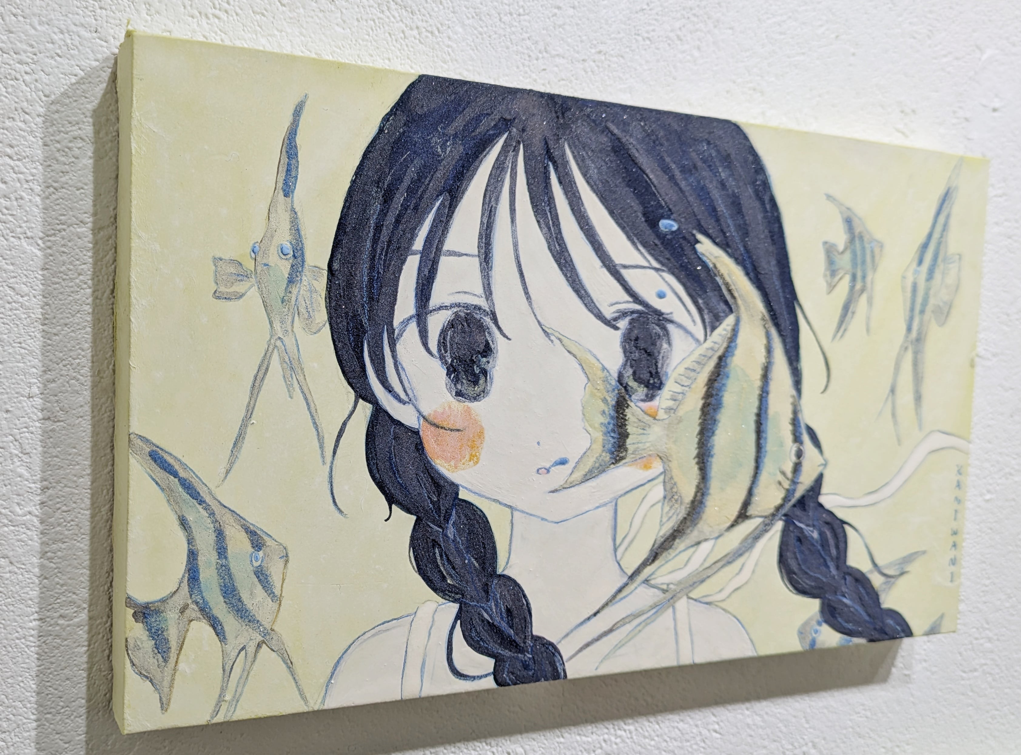 可愛さの中に不思議さや怖さ、懐かしさを秘めている絵を制作している。平面としての面白さと実際に見た時の質感や立体的な面白さの両立を模索している