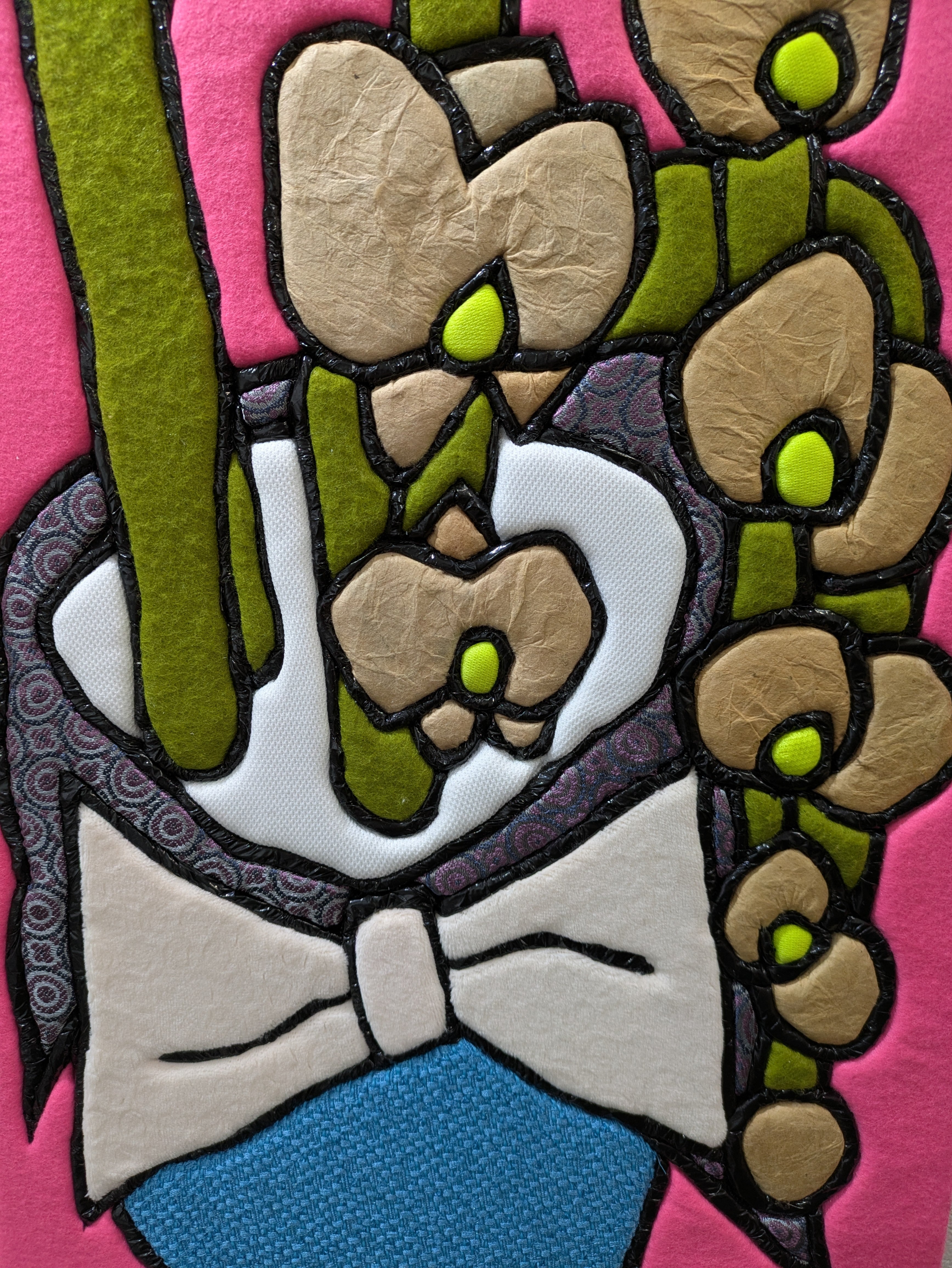 スタイロフォーム・フェルト・古着・柿渋染め和紙・ビニール袋。サイズおよそ58×27×5.5cm。オリジナル。シール・サイン。付属の箱はありません。