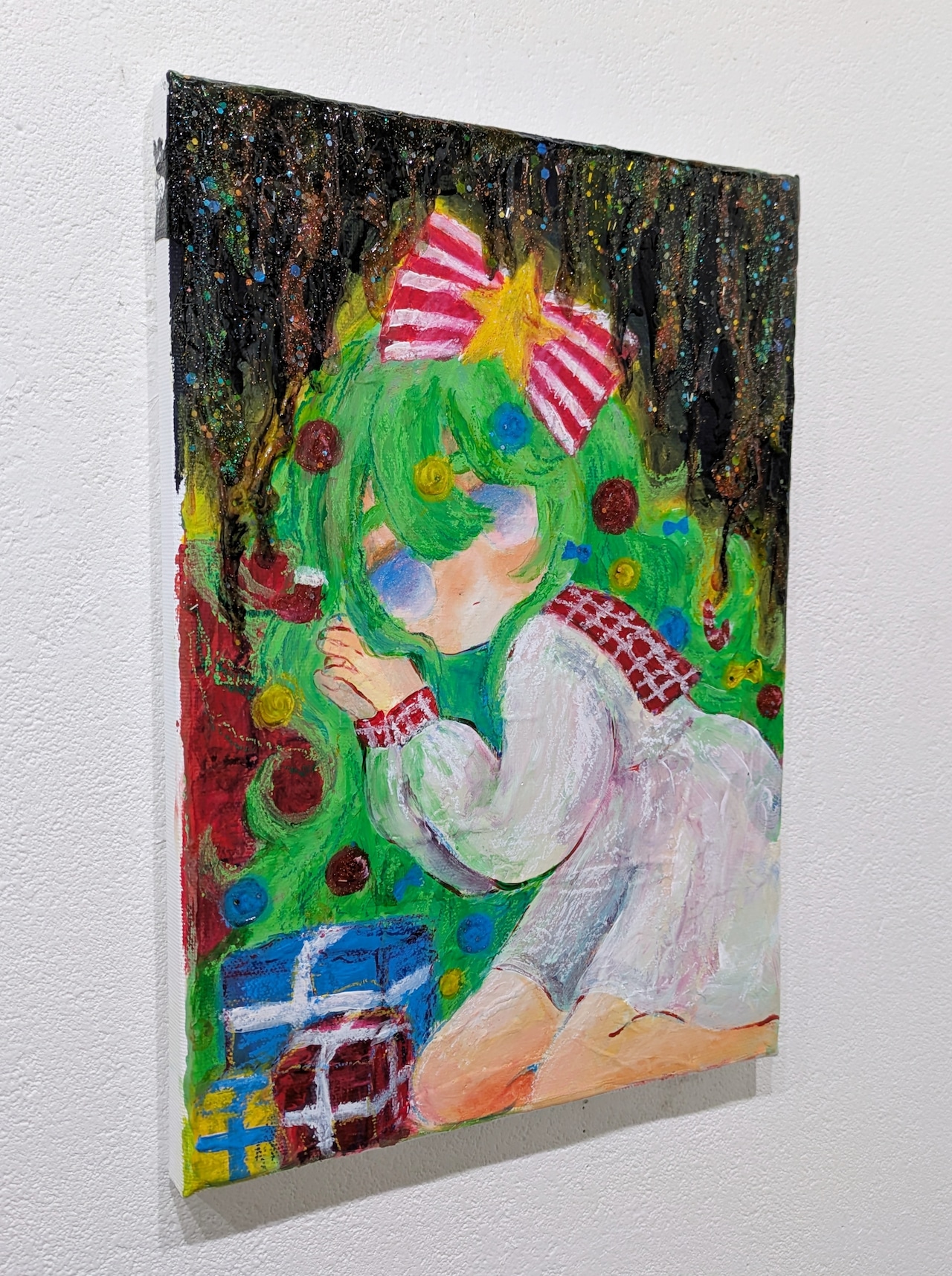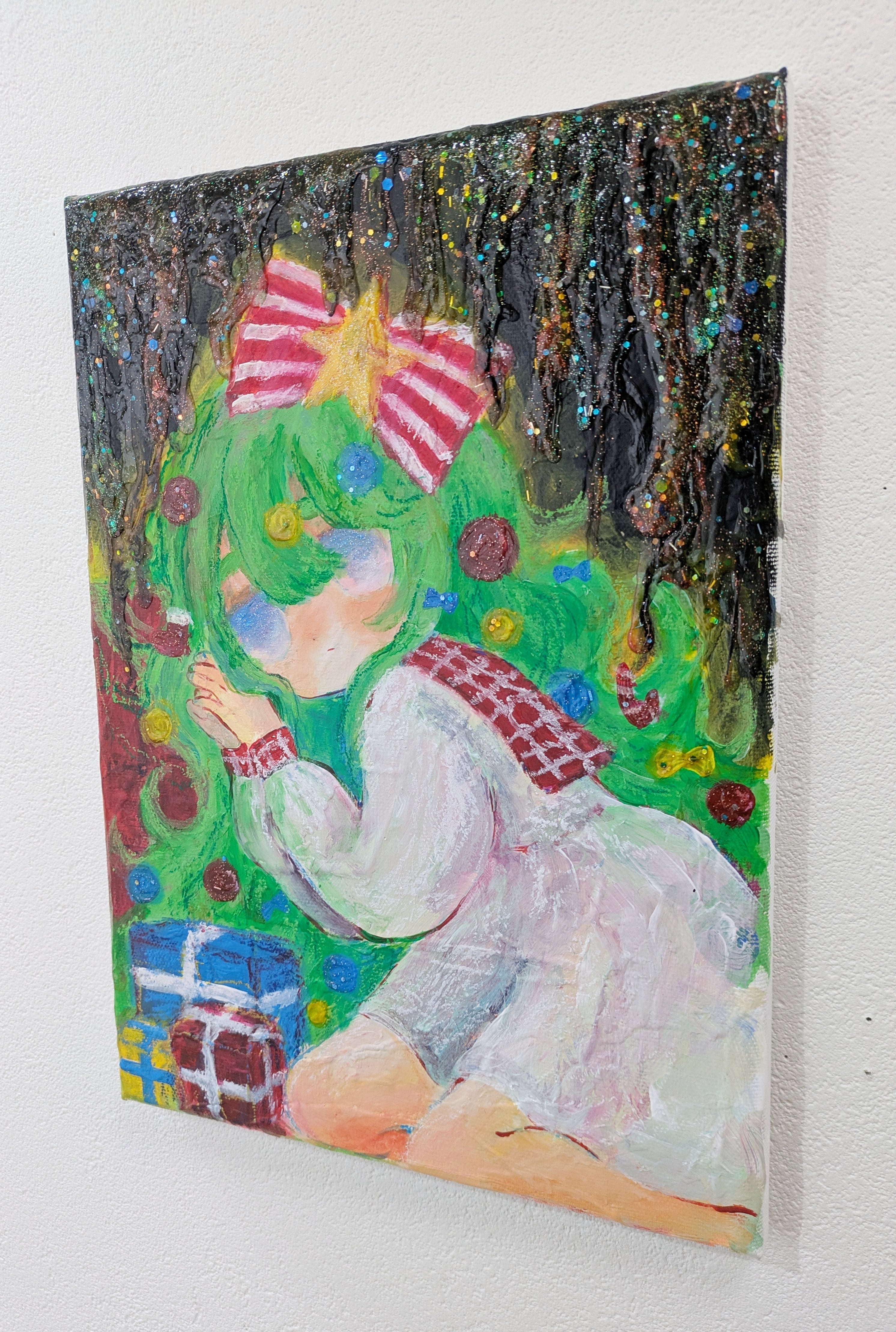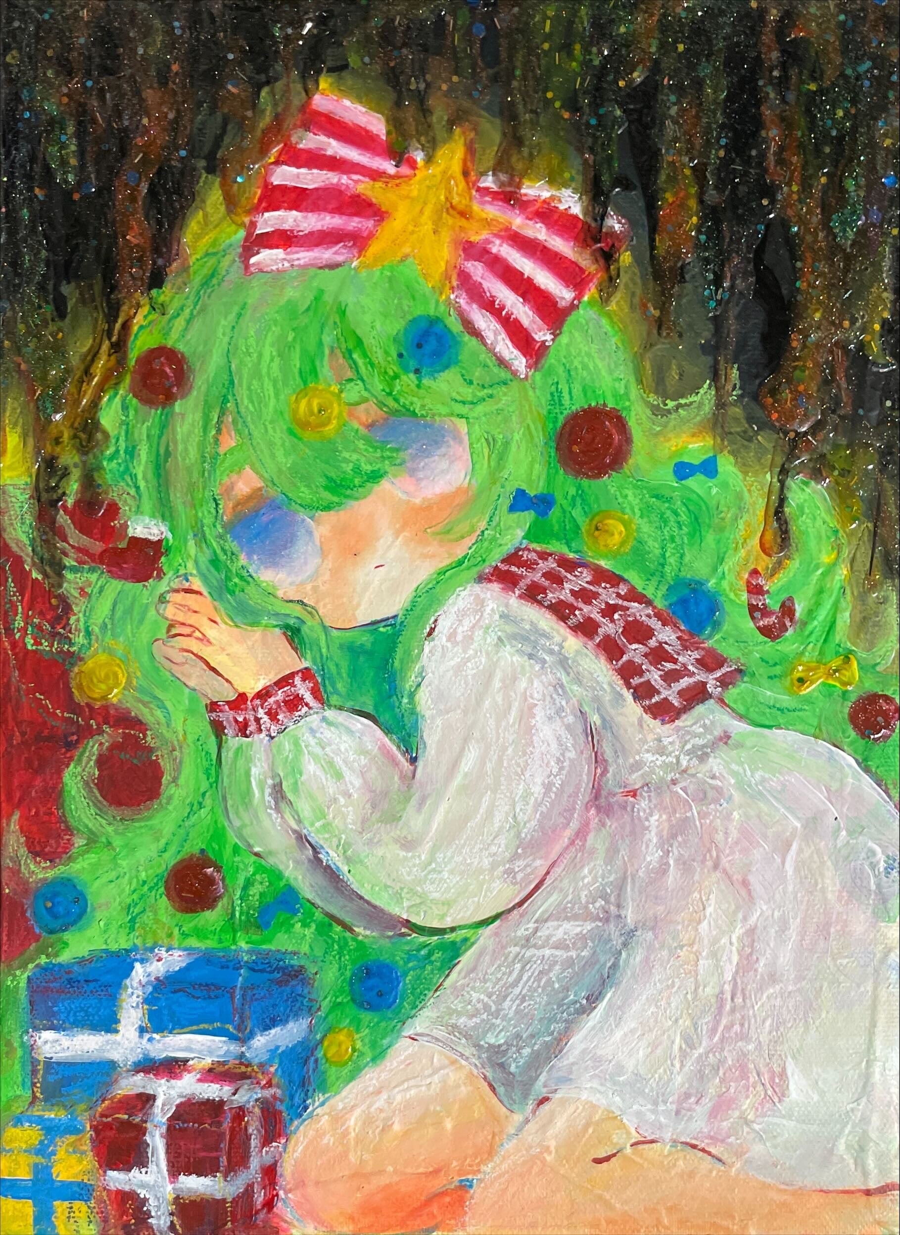2025年。キャンバス、アクリル、クレヨン。サイズ333×242mm。オリジナル。サイン入り。付属の箱はありません。発送は12月29日以降となります。