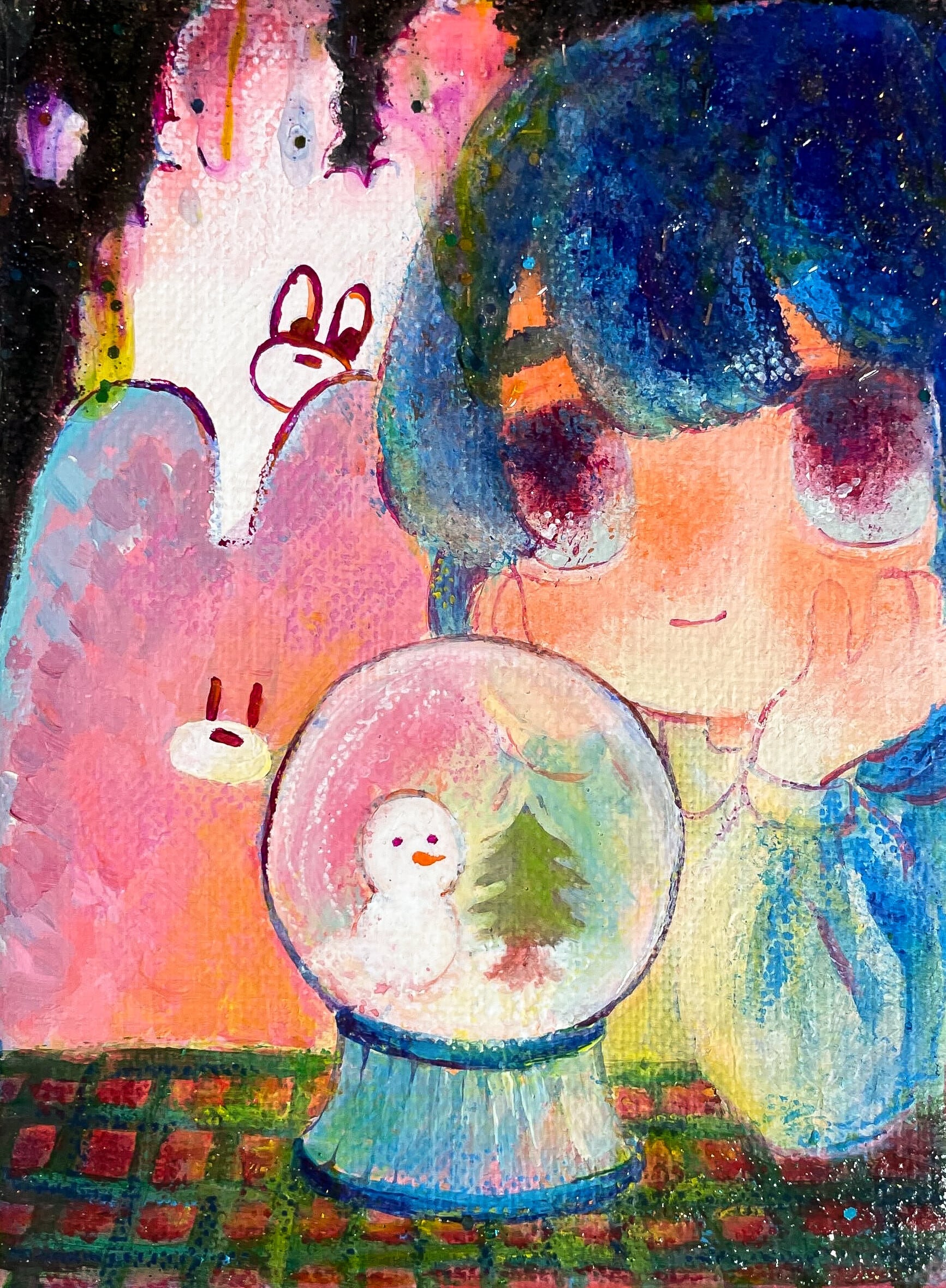 2025年。キャンバス、アクリル、クレヨン。サイズ180×140mm。オリジナル。サイン入り。付属の箱はありません。発送は12月29日以降となります。