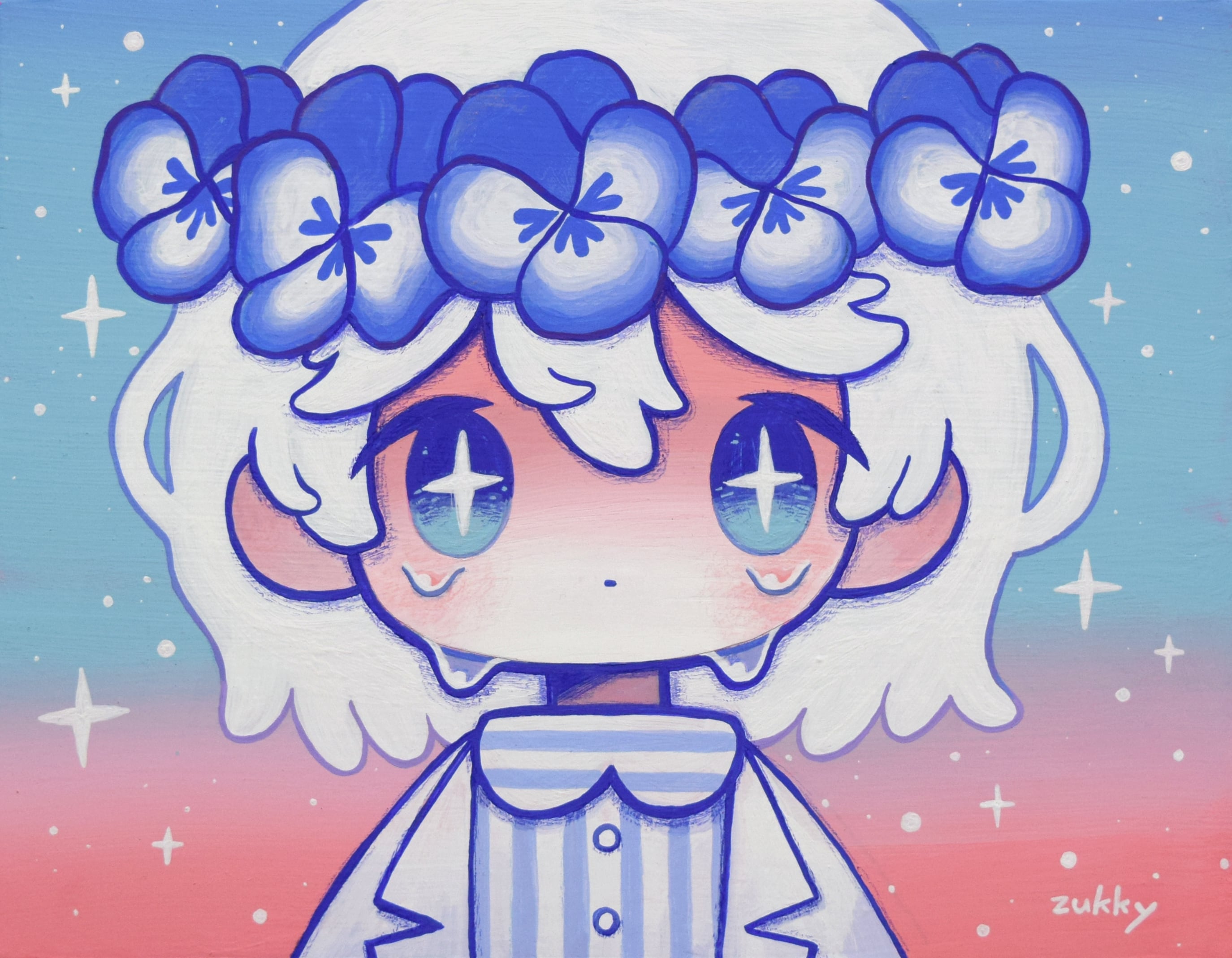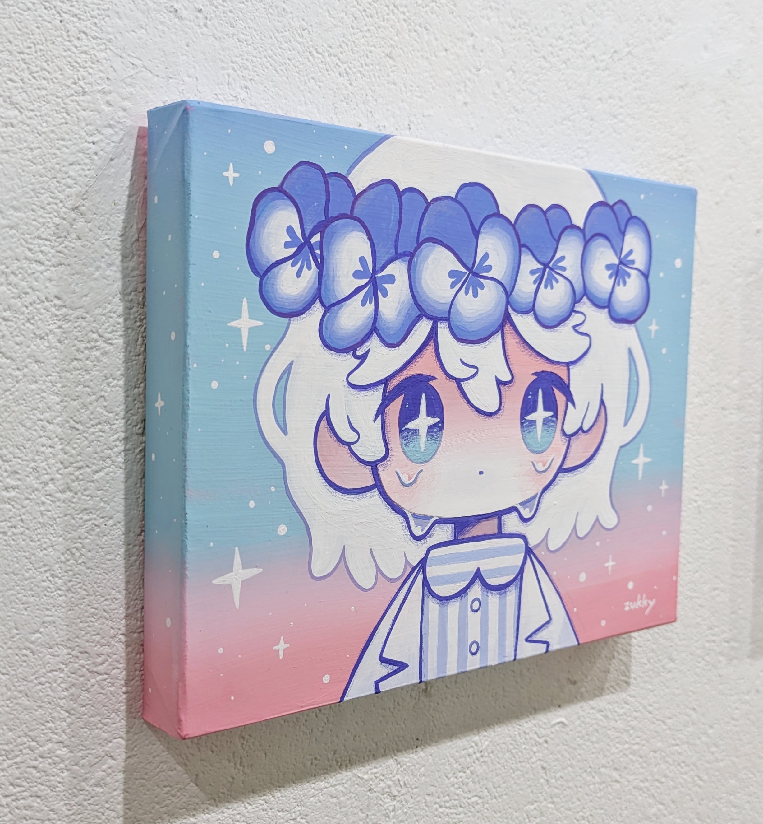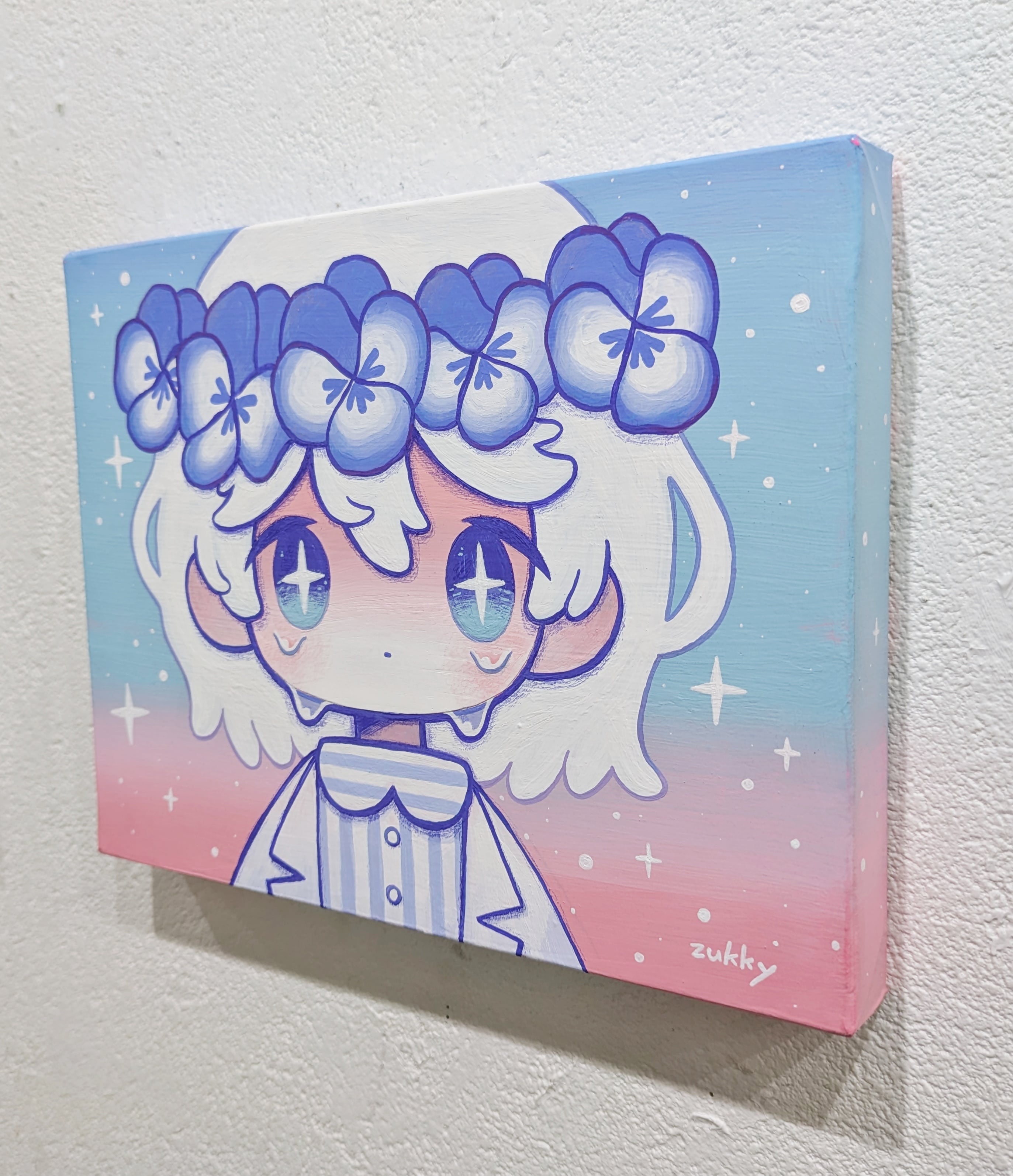 2025年。木製パネル、ケント紙、アクリルガッシュ、色鉛筆。サイズ180×140mm。オリジナル。サイン入り。付属の箱はありません。発送は12月29日以降となります。