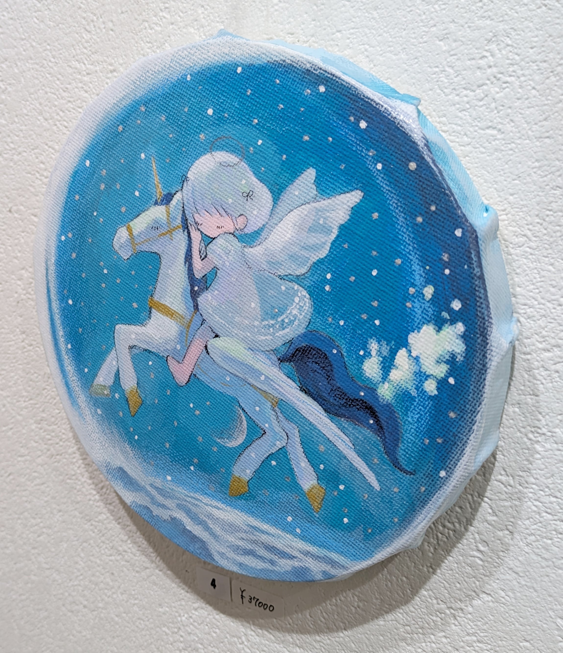 2025年。アクリル、色鉛筆、ラウンド・キャンバス。サイズ150×150mm。オリジナル。サインあり。箱などの付属品はありません。