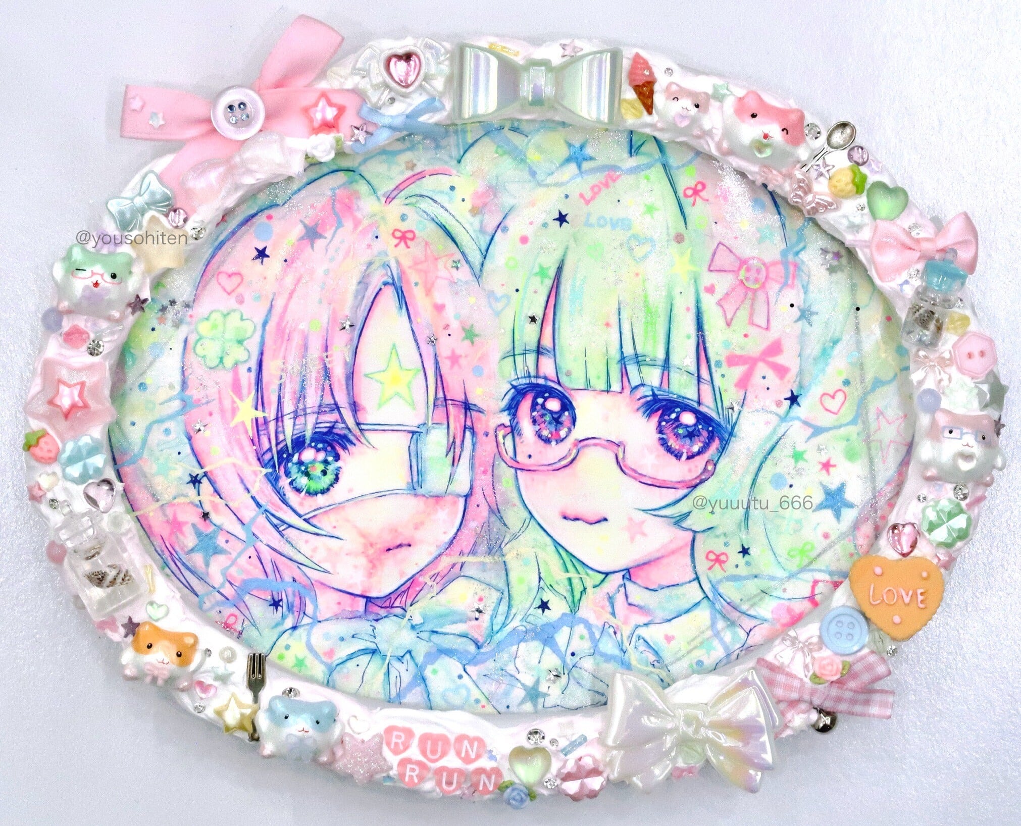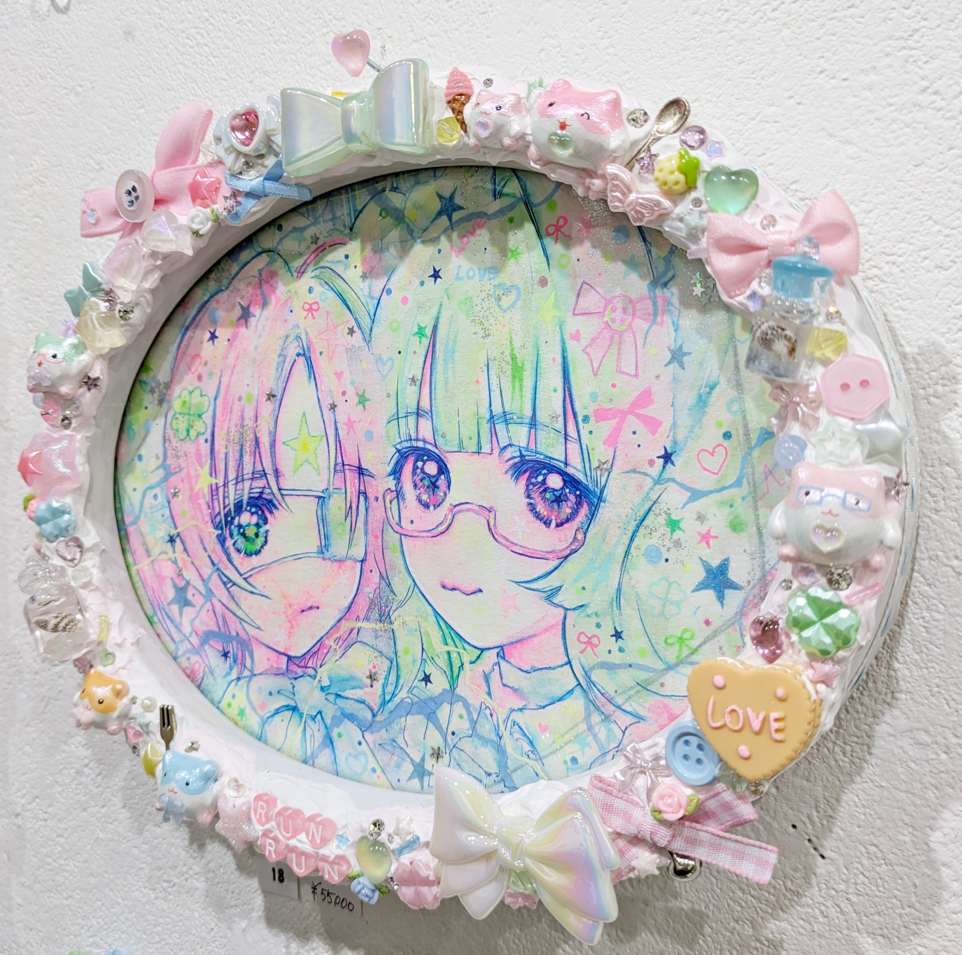2025年。木製額縁、アクリル絵具、デコパーツ、水彩紙、水彩絵具、顔料インクなど。サイズおよそ228×180mm。オリジナル。付属の箱はありません。また、上部のピン(くぎ)は付きません。