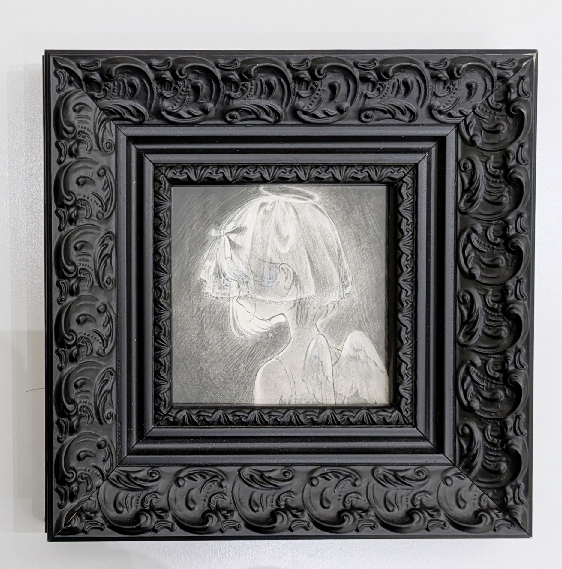 2025年。額付き。オランダ白厚紙、木炭鉛筆、アクリル。額サイズ額190×190×35mm。オリジナル。箱などの付属品はありません。