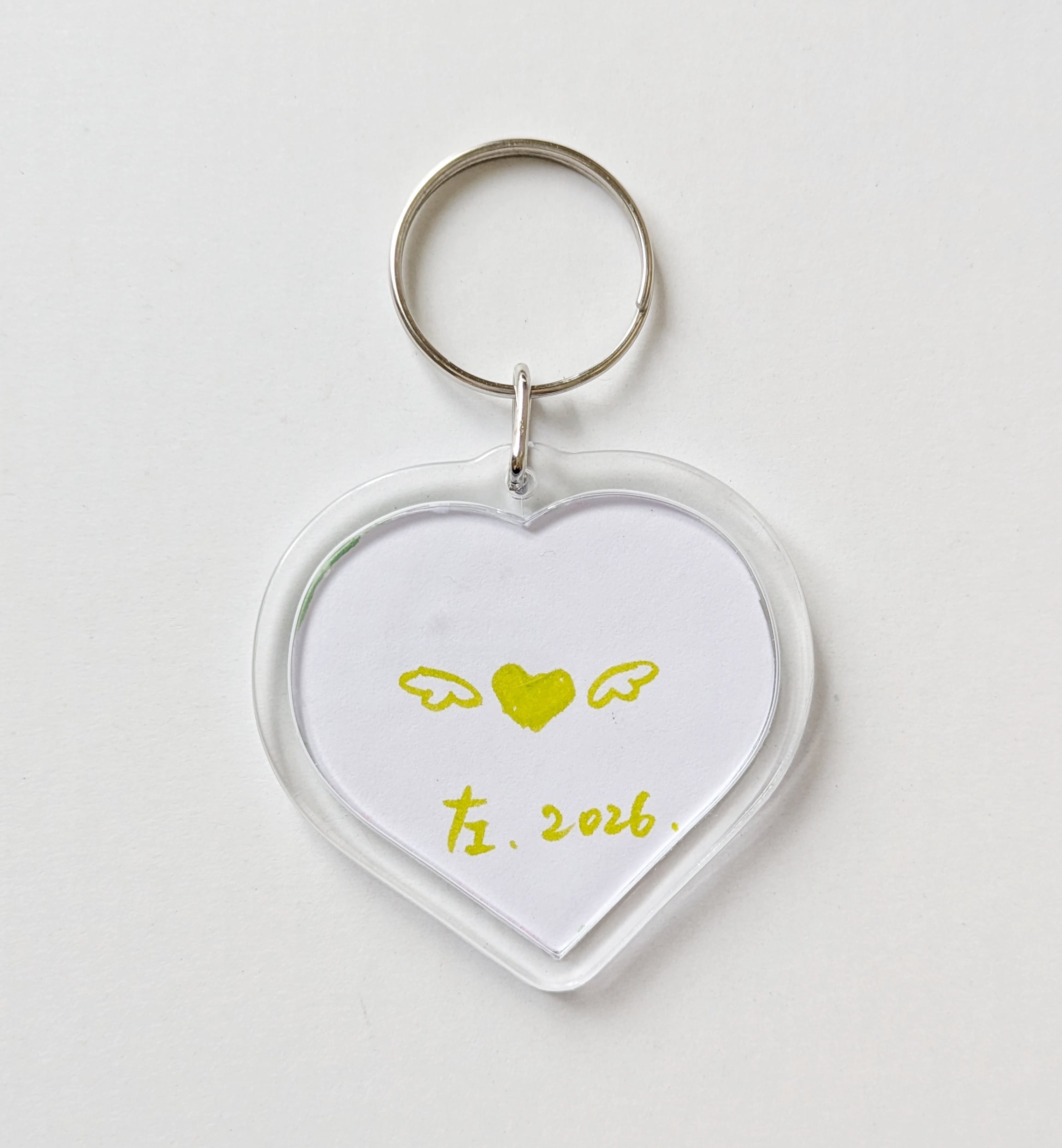 2026年。キーホルダー・サイズ50×50mm。オリジナル。サインあり。