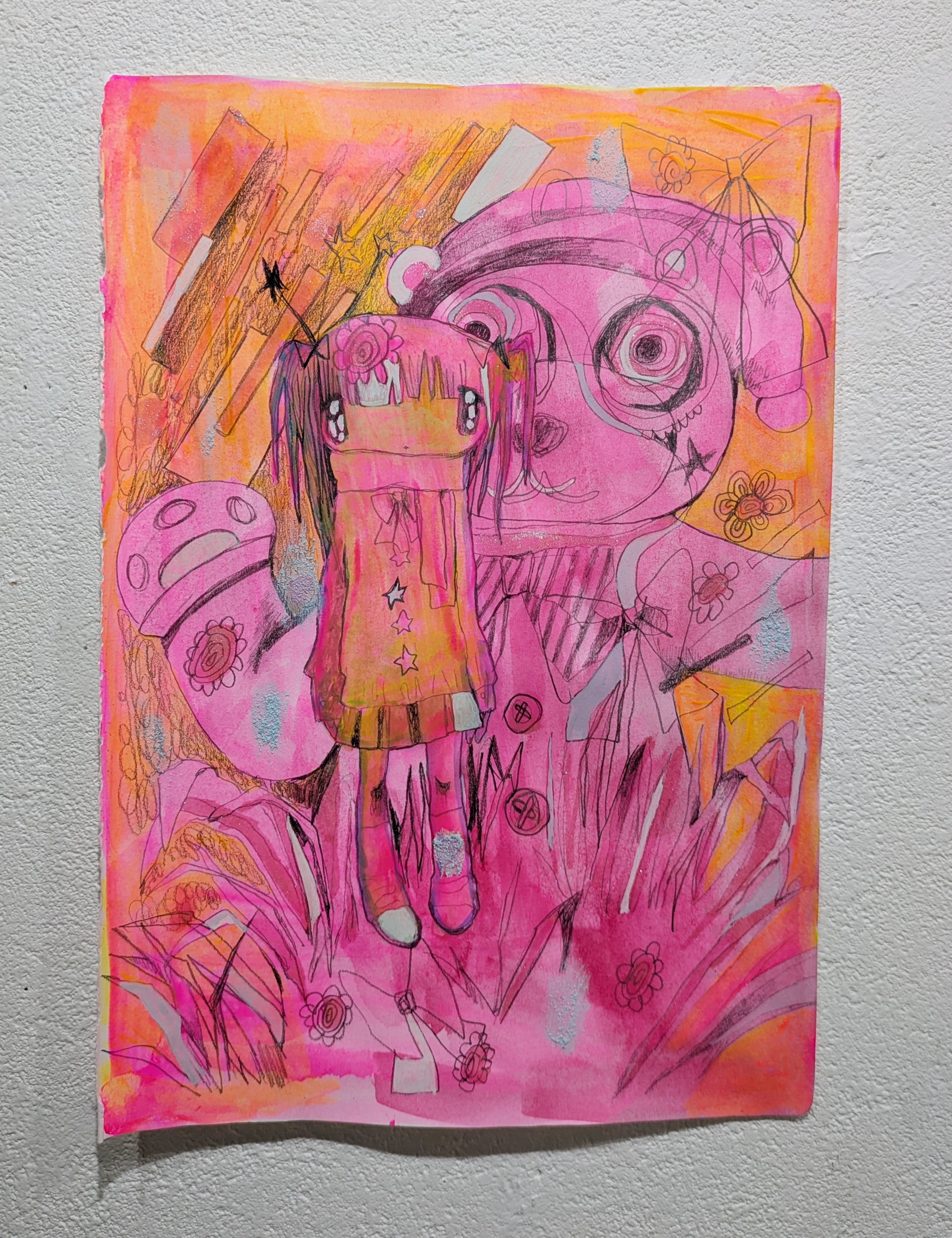 韓国出身のアーティスト、NARAKのドローイング。サイズおよそ290×202mm。オリジナル。サインあり。発送は2月9日以降となります。