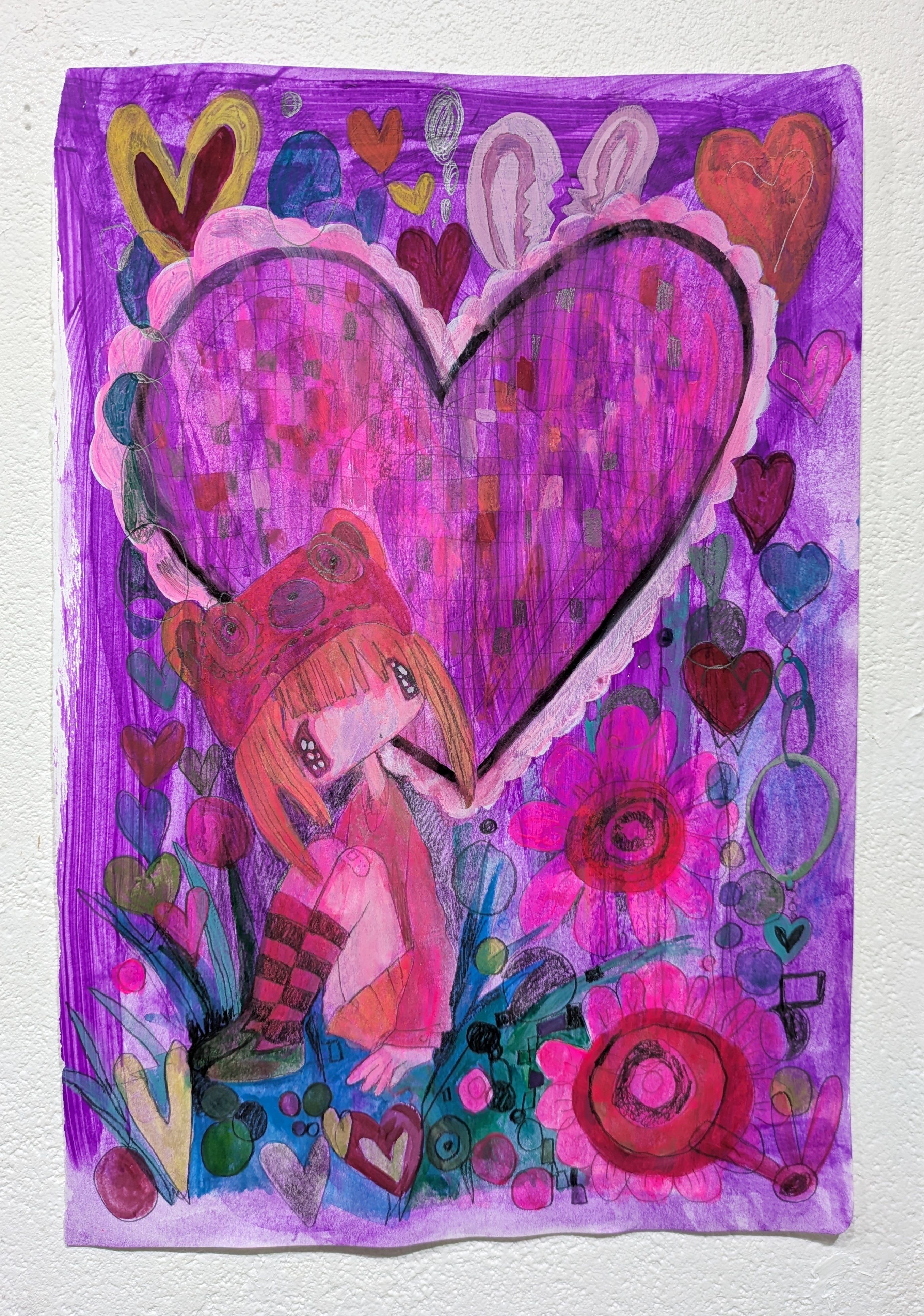 韓国出身のアーティスト、NARAKのドローイング。サイズおよそ290×200mm。オリジナル。サインあり。発送は2月9日以降となります。