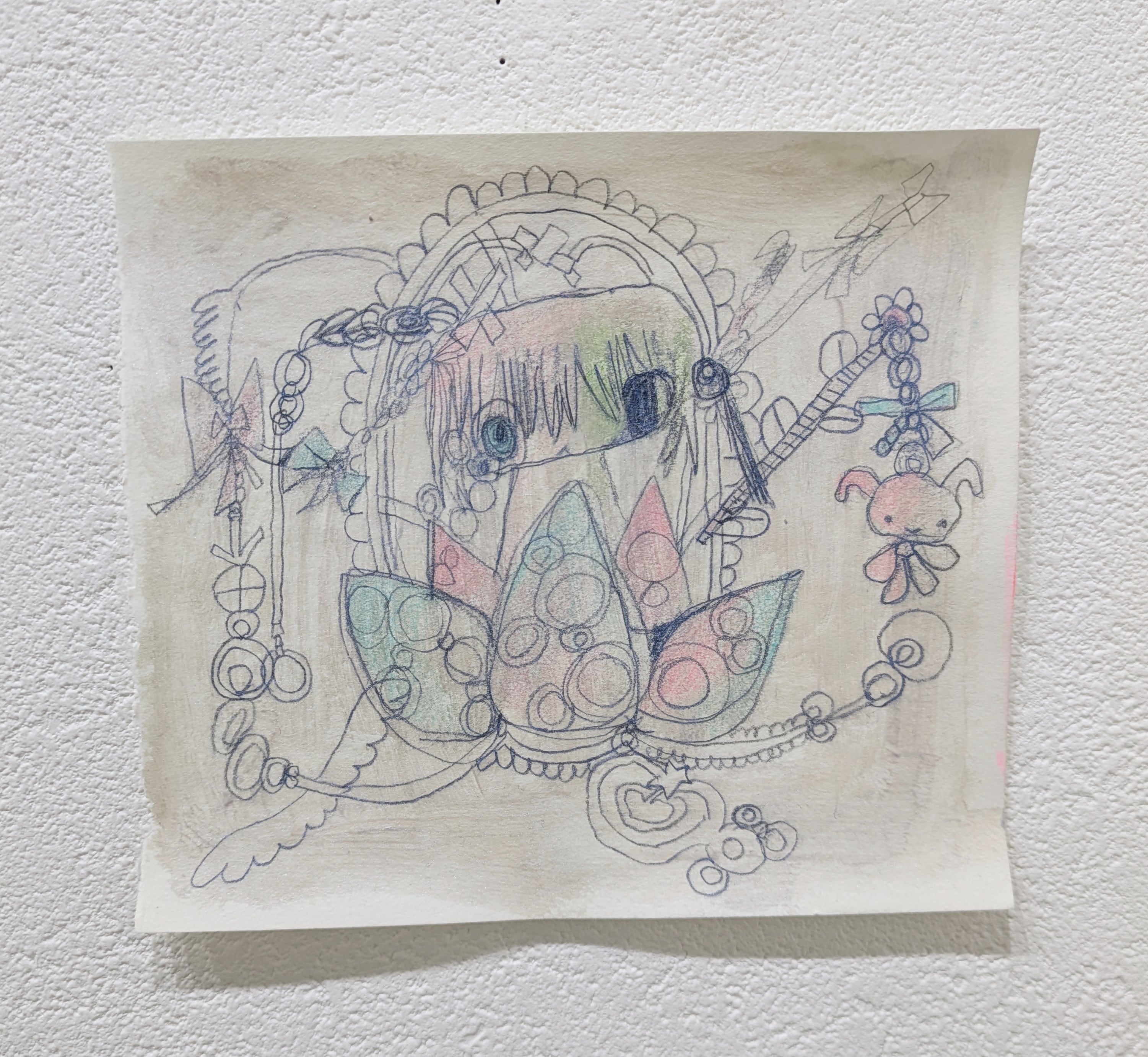 韓国出身のアーティスト、NARAKのドローイング。サイズおよそ130×145mm。オリジナル。サインあり。発送は2月9日以降となります。