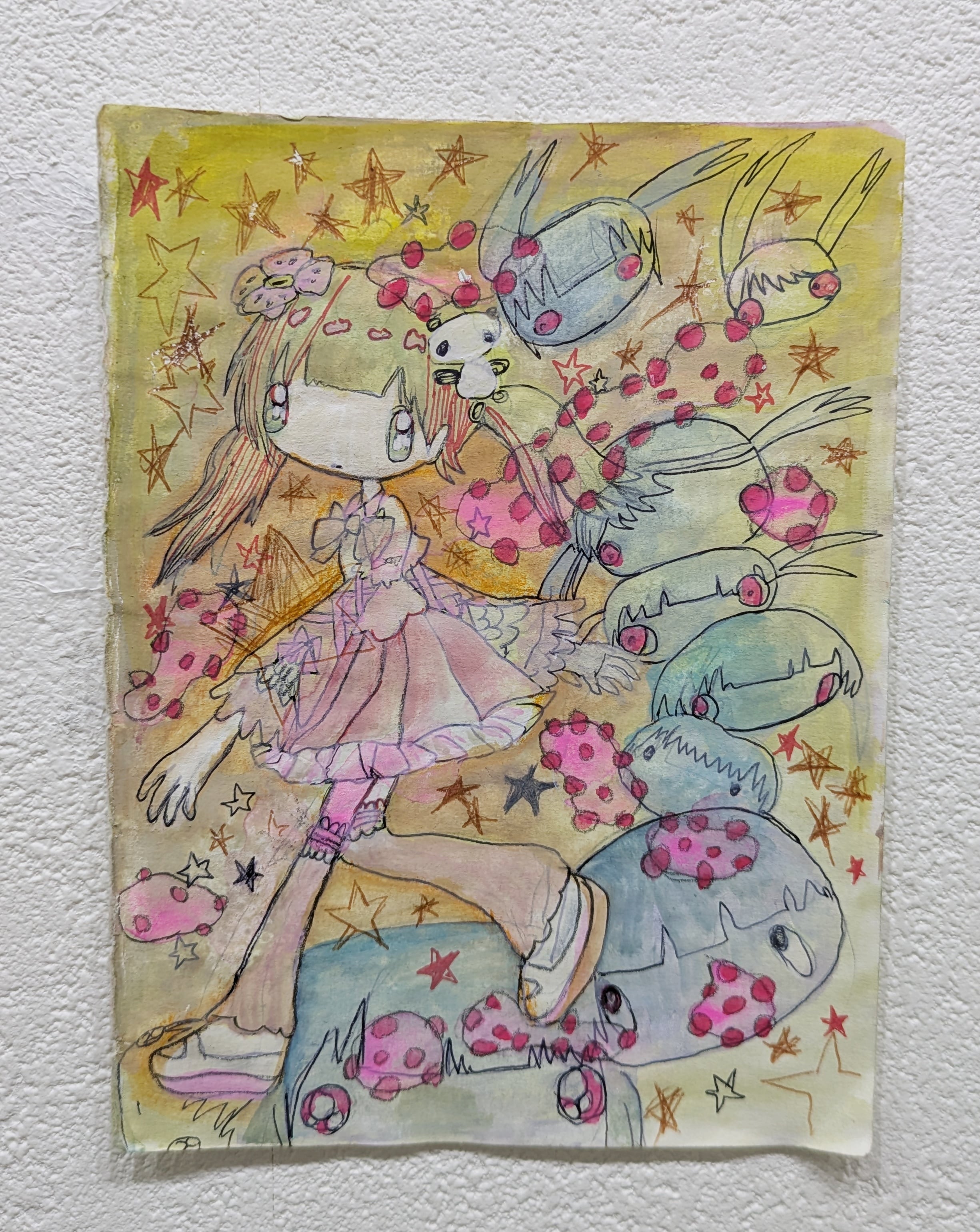 韓国出身のアーティスト、NARAKのドローイング。サイズおよそ153×113mm。オリジナル。サインあり。発送は2月9日以降となります。