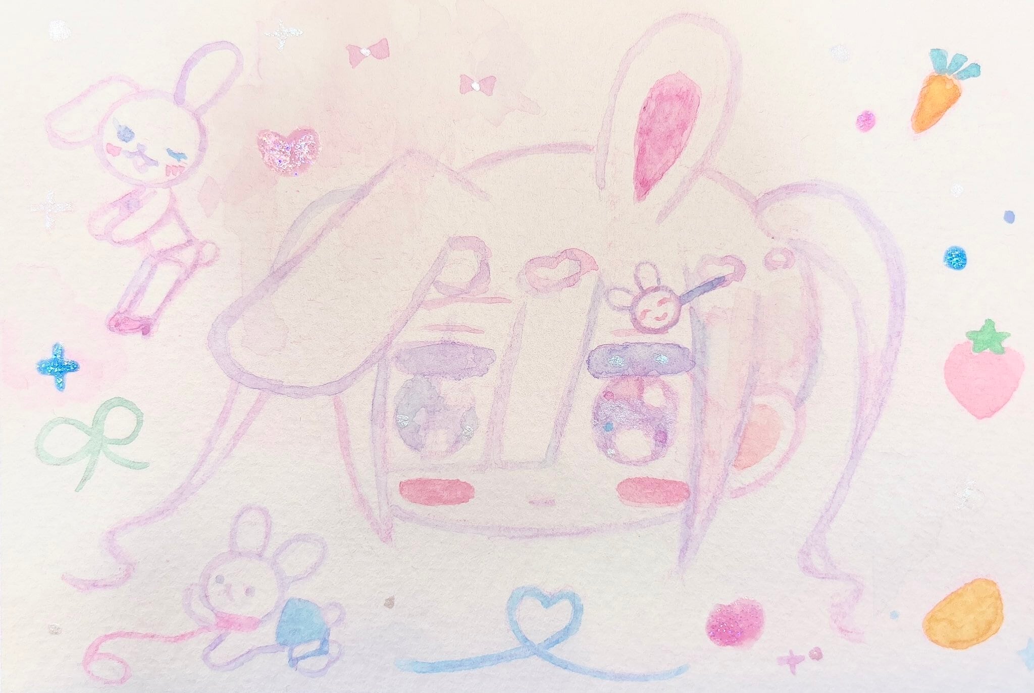 2026年。紙にシャープペンシル・アクリル絵の具・水彩。サイズ148×100mm。オリジナル。サインあり。