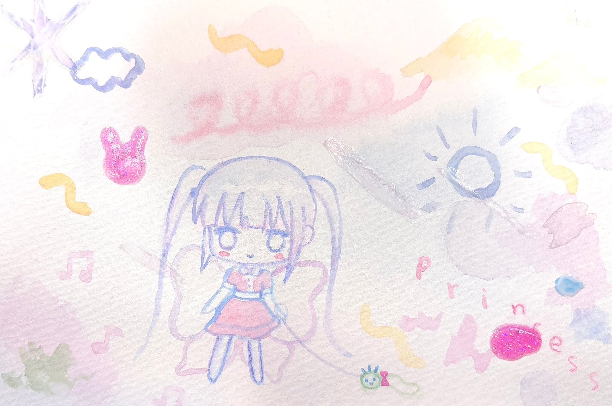 2026年。紙に水彩・ジェルメディウム・色鉛筆・アクリル絵の具。サイズ148×100mm。オリジナル。サインあり。