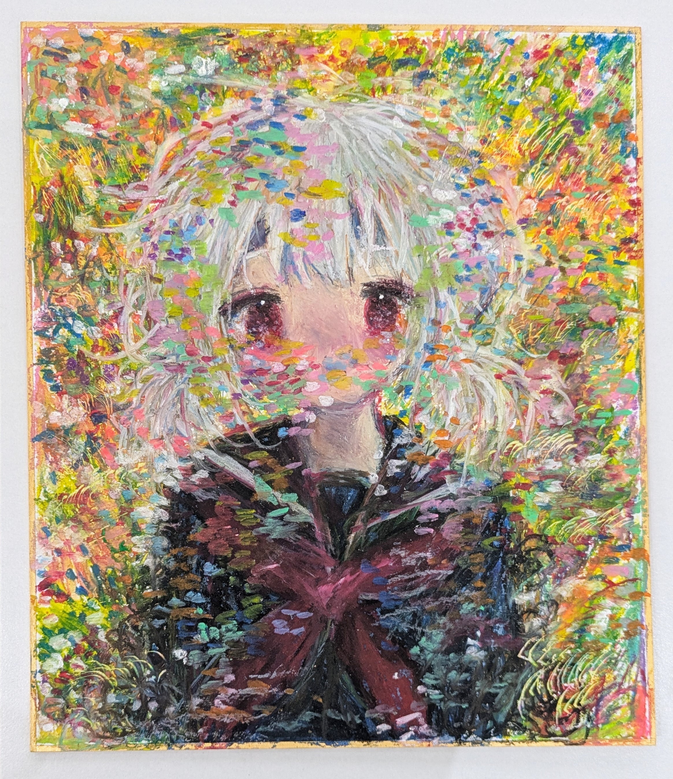 2026年。色紙、クレパス、水彩。サイズ210×180mm。オリジナル。サインあり。発送は3月9日以降となります。付属の箱はありません。