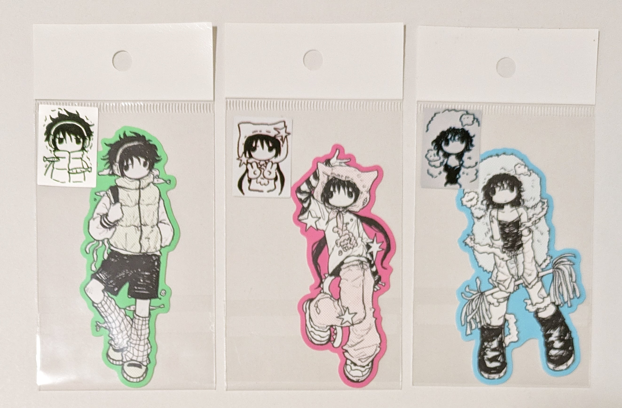 ステッカー3枚セット。ステッカーのサイズおよそ縦95~105×横40~50mm。
