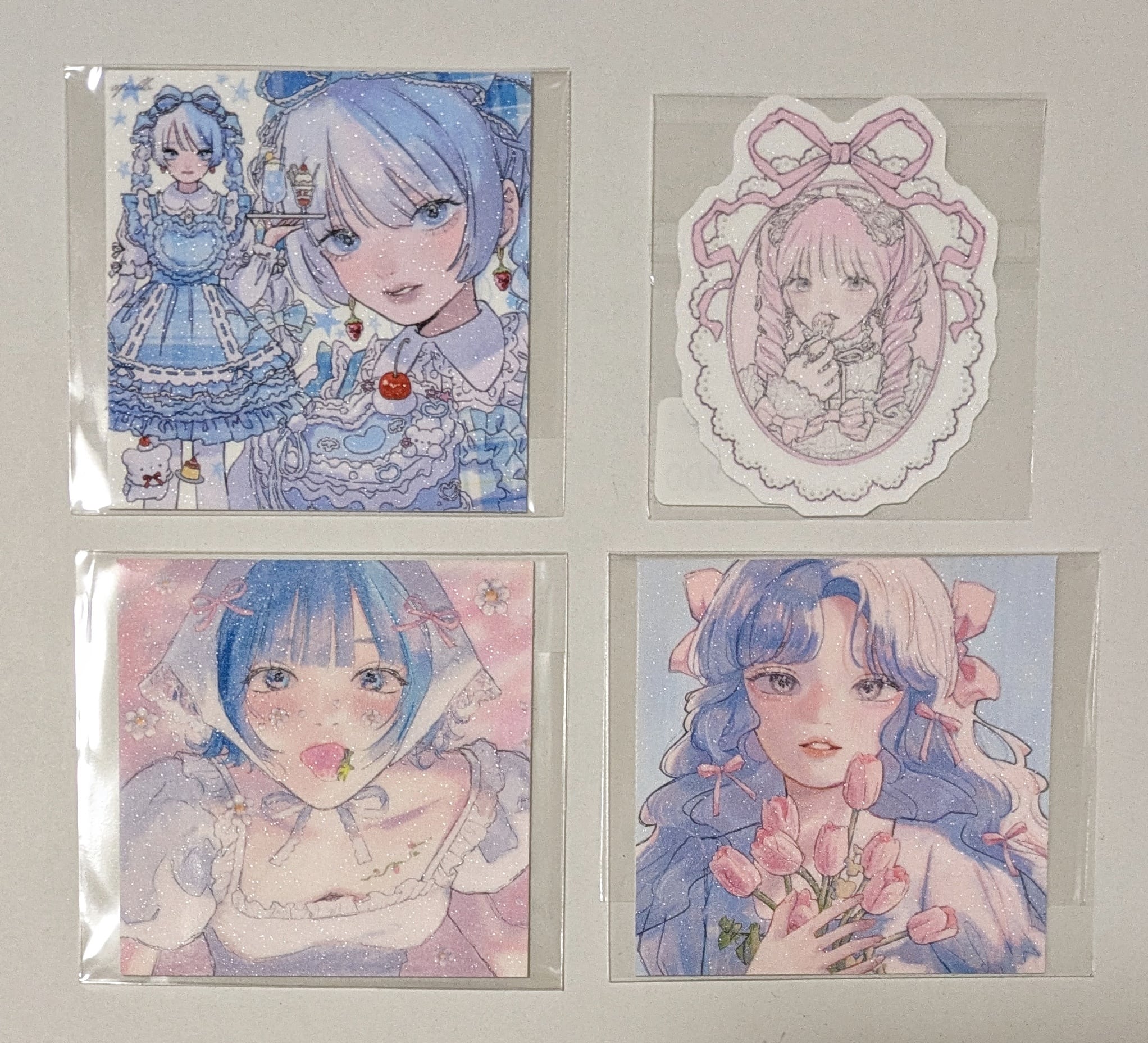 ステッカー4枚。正方形のシールのサイズおよそ60×60mm。画像2枚目のシールはサイズおよそ60×45mm。