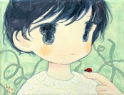可愛さの中に不思議さや怖さ、懐かしさを秘めている絵を制作している。平面としての面白さと実際に見た時の質感や立体的な面白さの両立を模索している