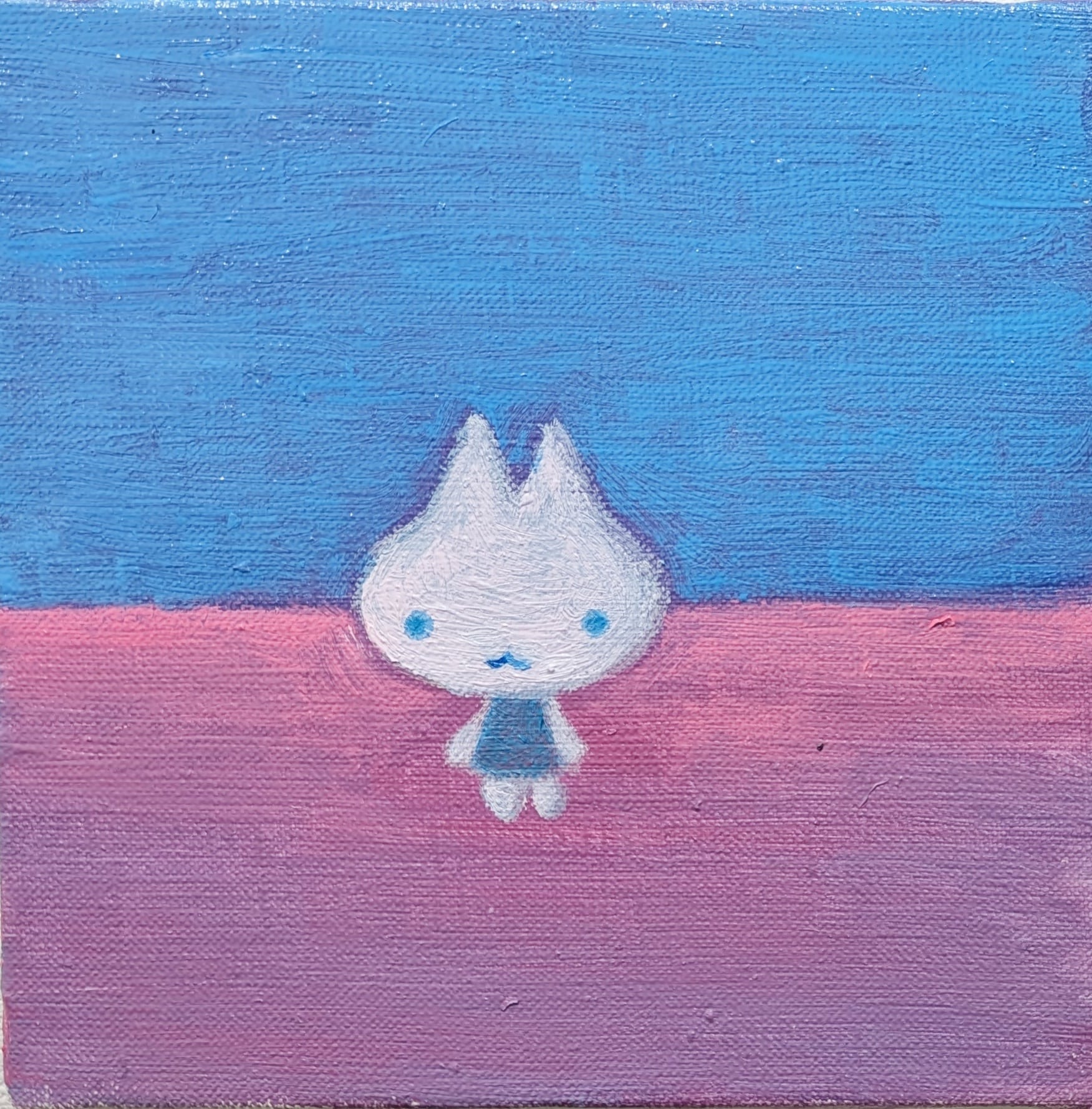 白い1匹のねこをモチーフに、気ままに絵を制作・発表している。
