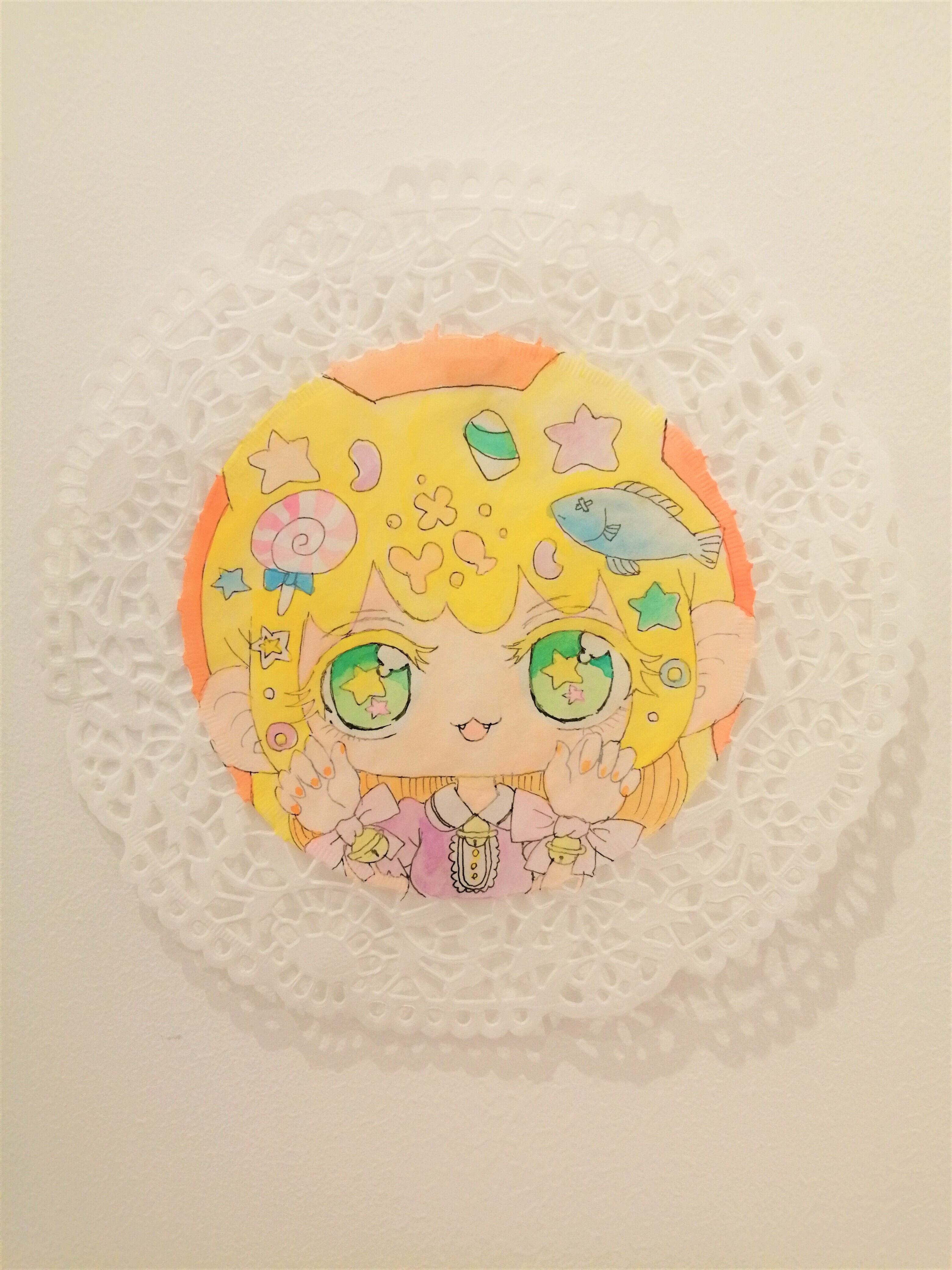 2021年。レースコースターに水彩絵具。サイズ直径15センチ。