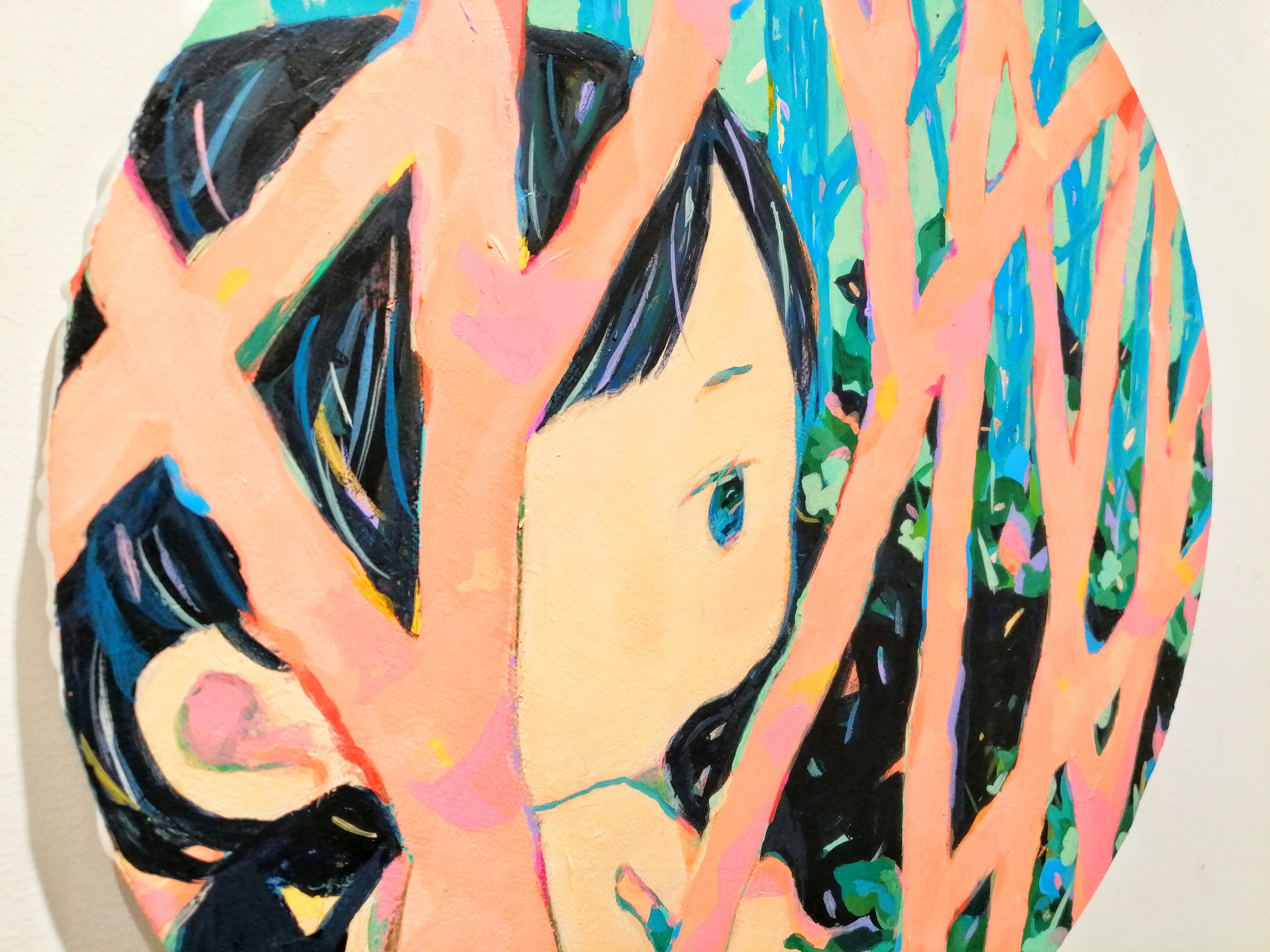 2022年。キャンバス、アクリル、色鉛筆。丸型キャンバス。サイズ直径300mm。オリジナル。サインあり。