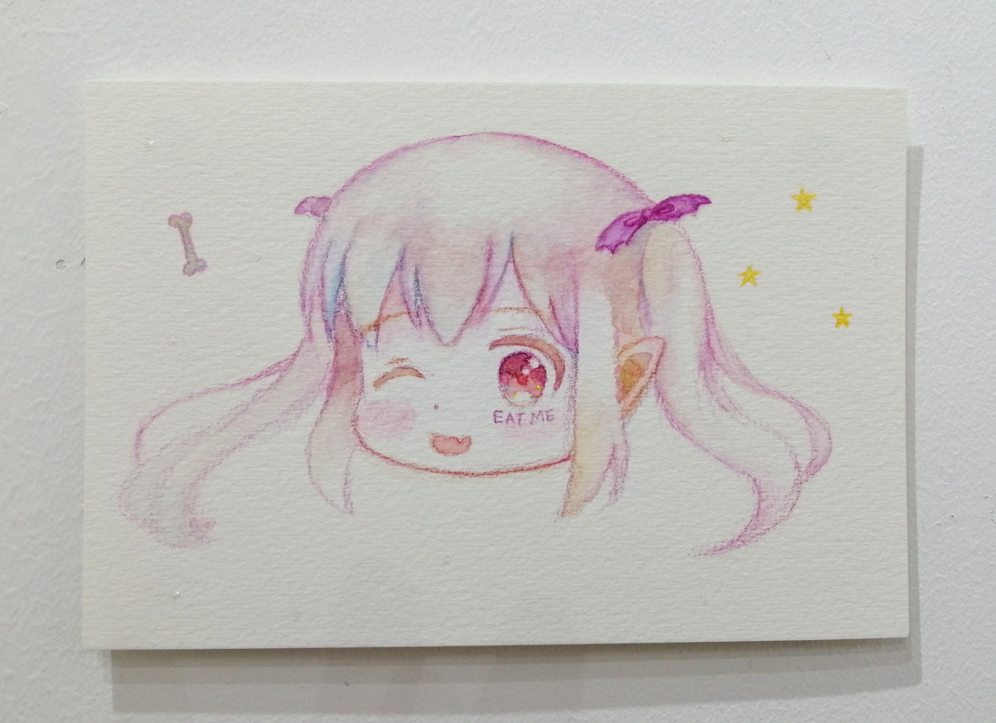 2022年。紙、水彩絵具、アクリル絵具、水彩色鉛筆。100×148mm。オリジナル。サインあり。