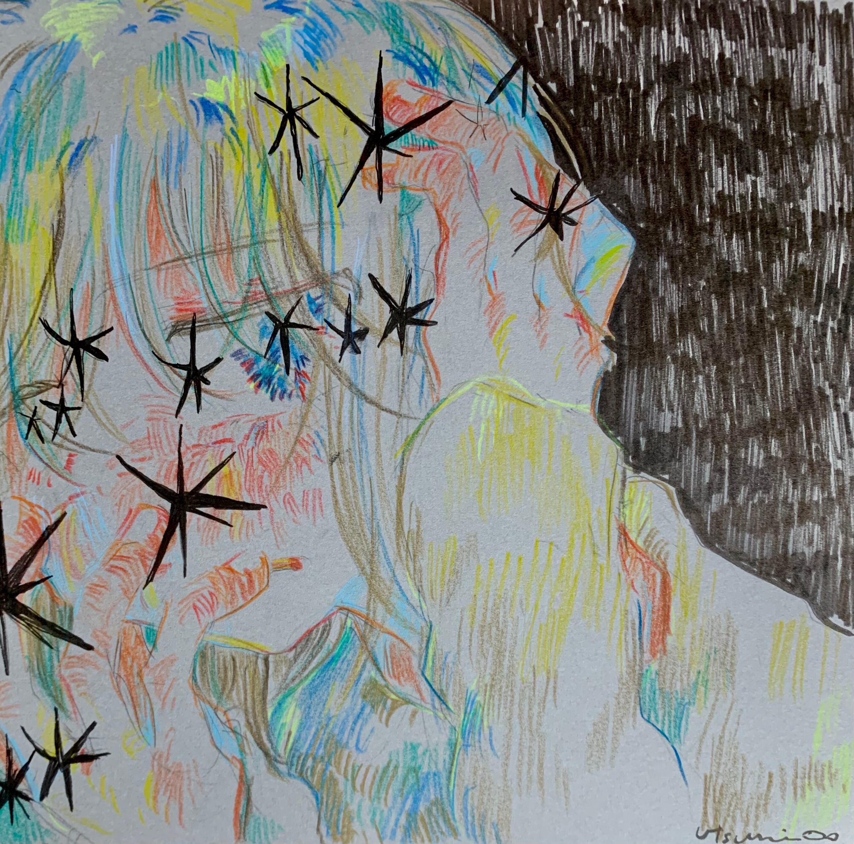 2023年。色画用紙、鉛筆、色鉛筆、ペン。210×210mm。オリジナル。サインあり。なお、作品の発送は2月13日以降となります。予めご了承ください。