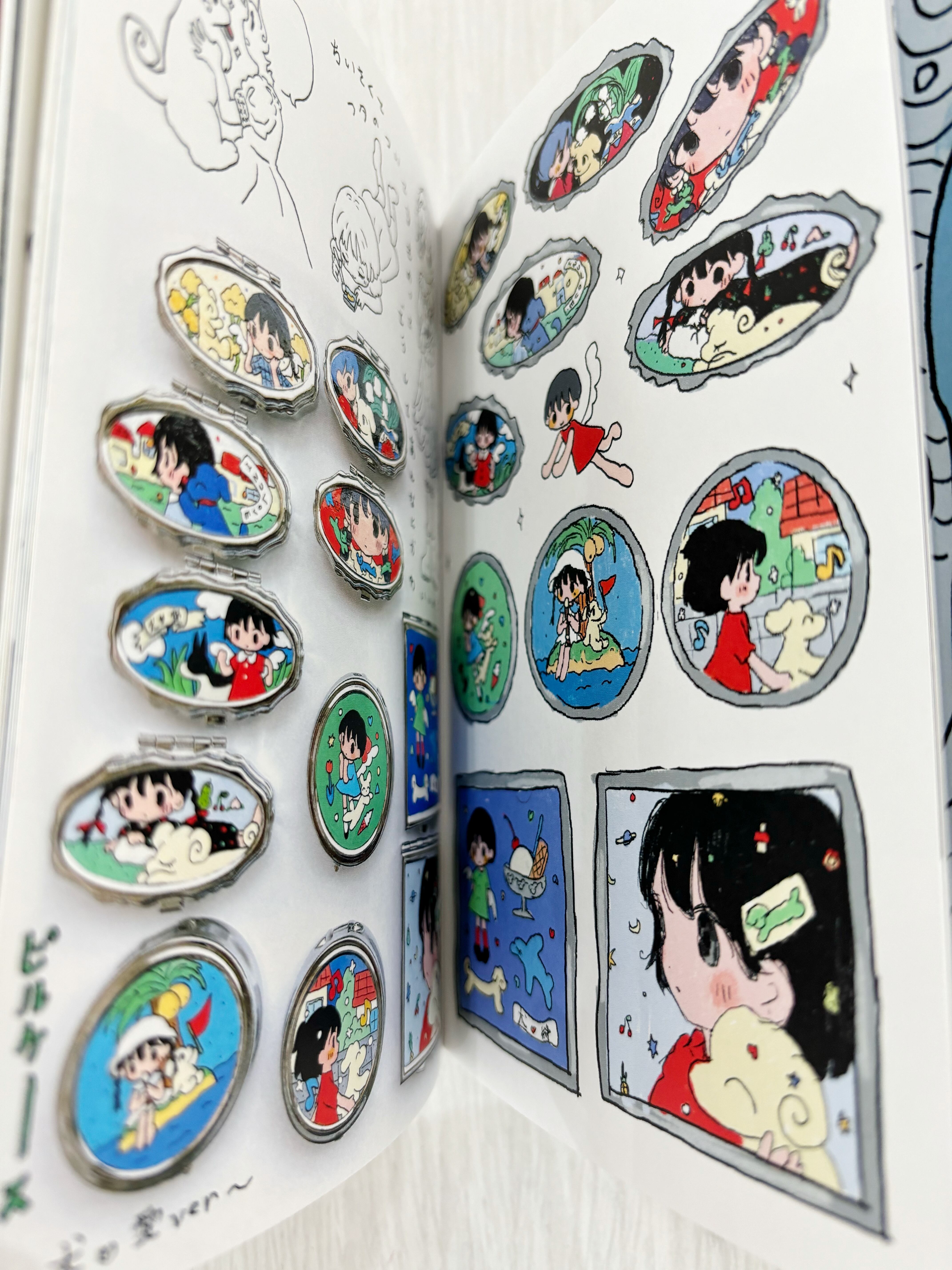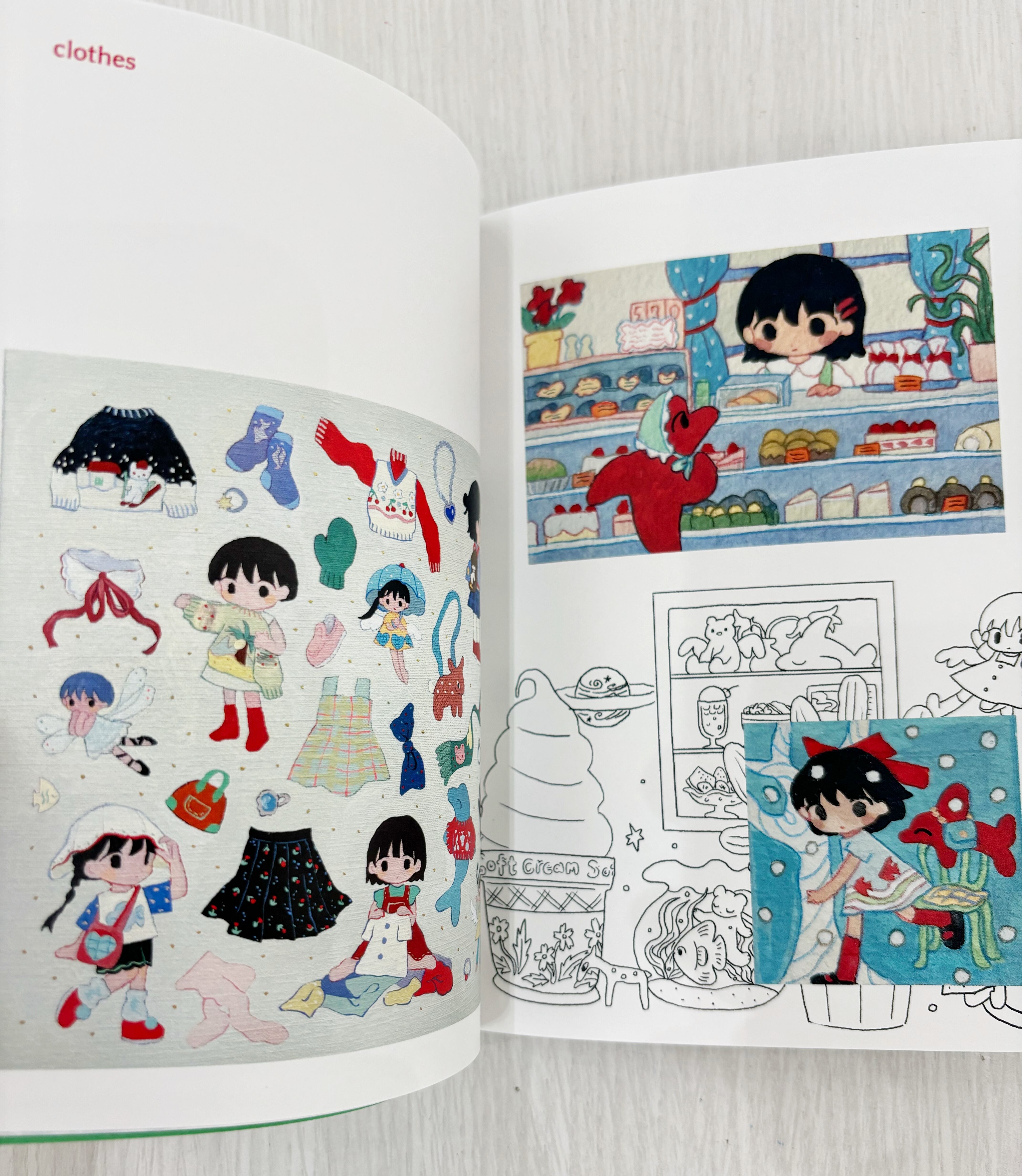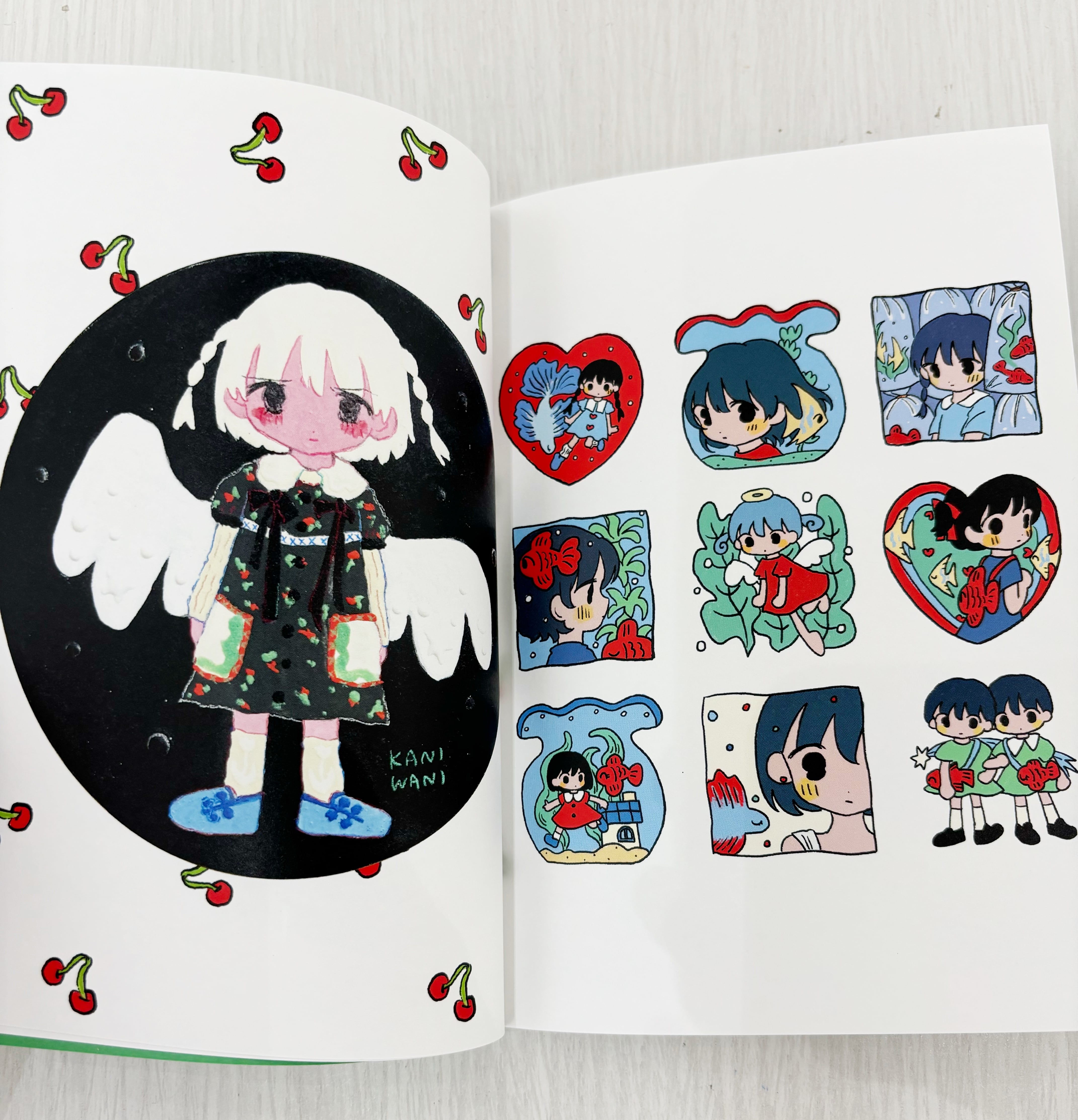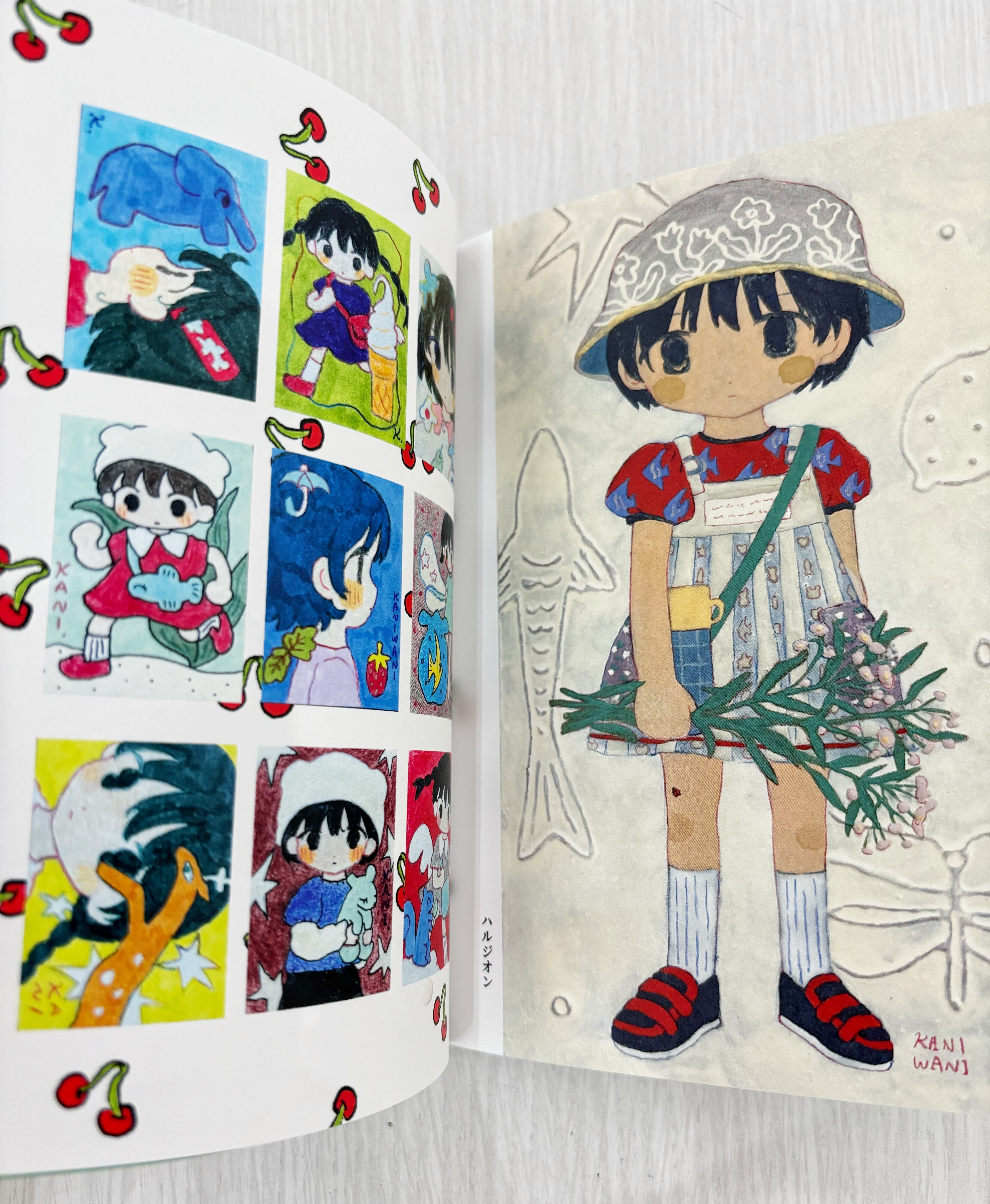 本文52ページ。B6サイズ128×182mm。台湾個展に合わせて作った新しい画集です。魚の絵が気持ち多めです。表紙は全面箔になっています。