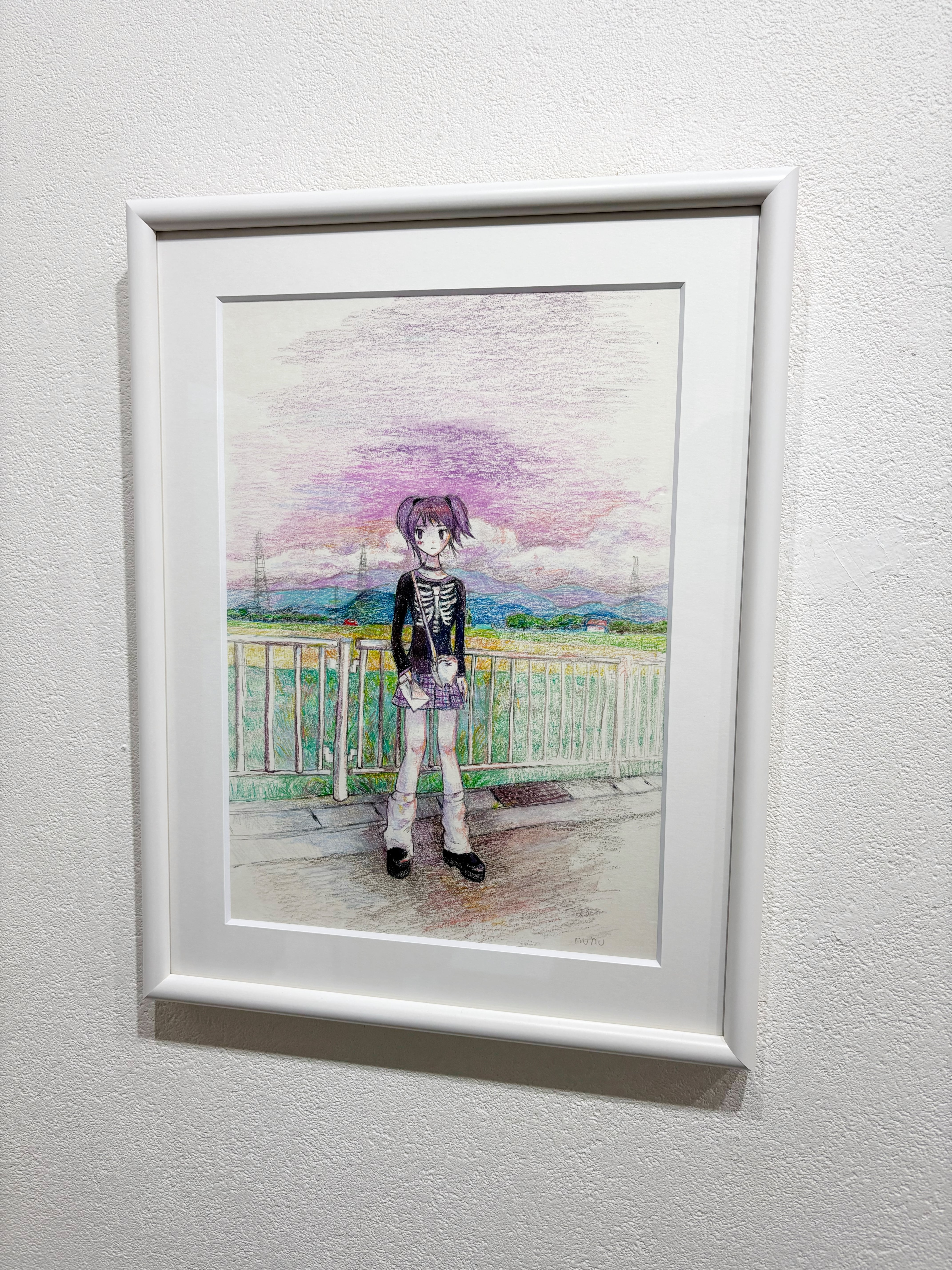 2021年。画用紙、色鉛筆。紙サイズ およそ297×210mm。額サイズ375×290mm。オリジナル。サインあり。作品の発送は、12月17日以降となります。