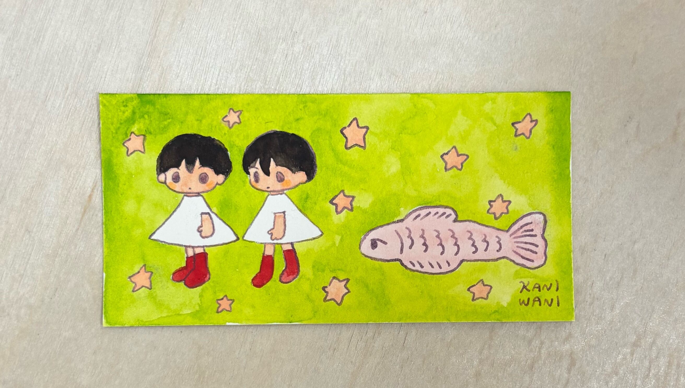 2024年。紙、水彩絵の具。サイズ50×100mm。オリジナル・サインあり。